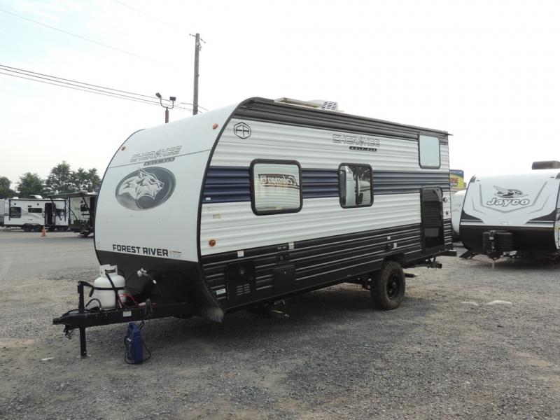 Each one of these Forest River Cherokee Wolf Pup travel trailers are lightweight and easy to tow! They are fully self contained with ample tank capacities, an abundance of storage space, and filled with at home amenities. The aerodynamic smooth radius front profile, the Power Gear frame technology, and the space saver rail design make them easier to maneuver. You will also appreciate the seamless roofing membrane with heat reflectivity to keep the sun from making your unit a hot box. The tongue and groove plywood flooring will hold up for years of fun and the USB charging stations help to keep your electronics at 100% while you're away. Come find the best model for you today!
