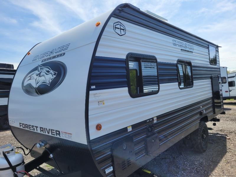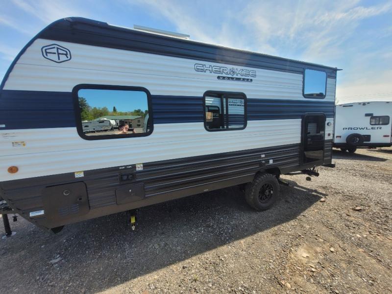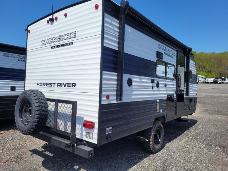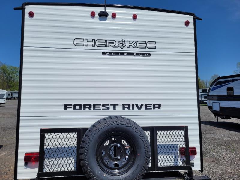 Each one of these Forest River Cherokee Wolf Pup travel trailers are lightweight and easy to tow! They are fully self contained with ample tank capacities, an abundance of storage space, and filled with at home amenities. The aerodynamic smooth radius front profile, the Power Gear frame technology, and the space saver rail design make them easier to maneuver. You will also appreciate the seamless roofing membrane with heat reflectivity to keep the sun from making your unit a hot box. The tongue and groove plywood flooring will hold up for years of fun and the USB charging stations help to keep your electronics at 100% while you're away. Come find the best model for you today!