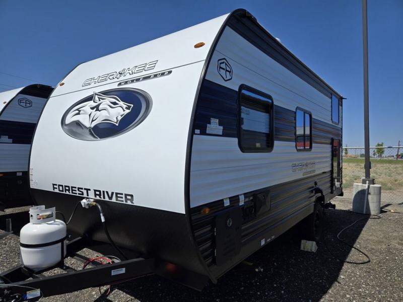 Each one of these Forest River Cherokee Wolf Pup travel trailers are lightweight and easy to tow! They are fully self contained with ample tank capacities, an abundance of storage space, and filled with at home amenities. The aerodynamic smooth radius front profile, the Power Gear frame technology, and the space saver rail design make them easier to maneuver. You will also appreciate the seamless roofing membrane with heat reflectivity to keep the sun from making your unit a hot box. The tongue and groove plywood flooring will hold up for years of fun and the USB charging stations help to keep your electronics at 100% while you're away. Come find the best model for you today!