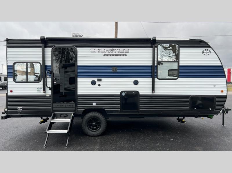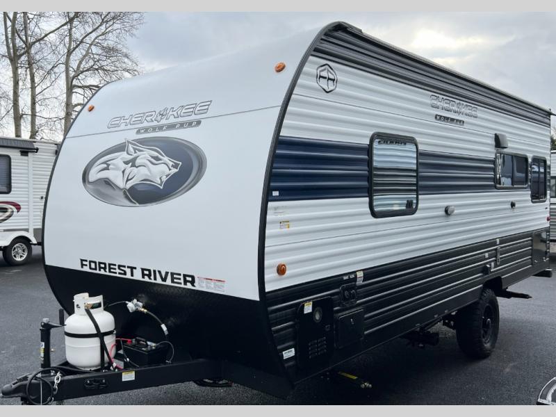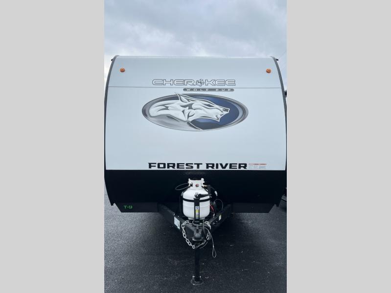 Each one of these Forest River Cherokee Wolf Pup travel trailers are lightweight and easy to tow! They are fully self contained with ample tank capacities, an abundance of storage space, and filled with at home amenities. The aerodynamic smooth radius front profile, the Power Gear frame technology, and the space saver rail design make them easier to maneuver. You will also appreciate the seamless roofing membrane with heat reflectivity to keep the sun from making your unit a hot box. The tongue and groove plywood flooring will hold up for years of fun and the USB charging stations help to keep your electronics at 100% while you're away. Come find the best model for you today!