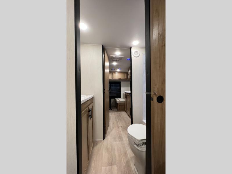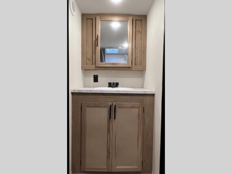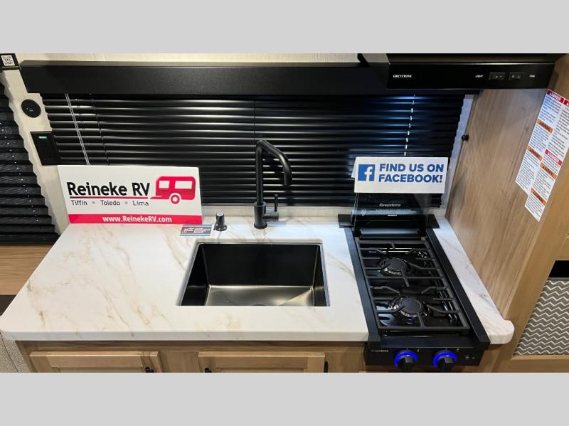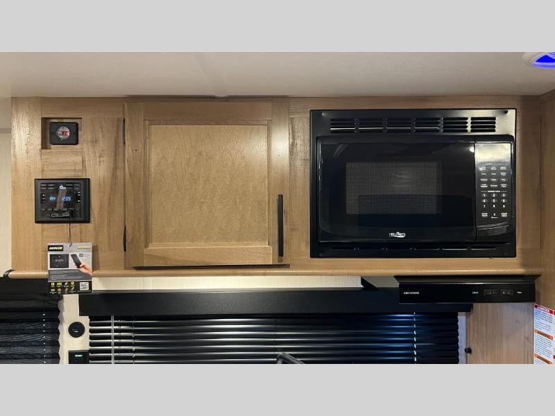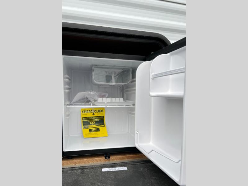 Convenient camping is found with this lightweight travel trailer! Once you arrive at your destination, put out the 15' power awning, then make lunch on the exterior mini kitchen. Inside, you can dine at the booth dinette, freshen up in the tub/shower, and sleep soundly on the queen bed in the master bedroom. And you're sure to find plenty of storage spaces both inside and outside, including a rear storage rack!