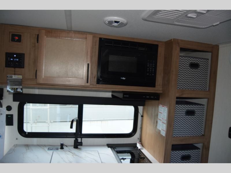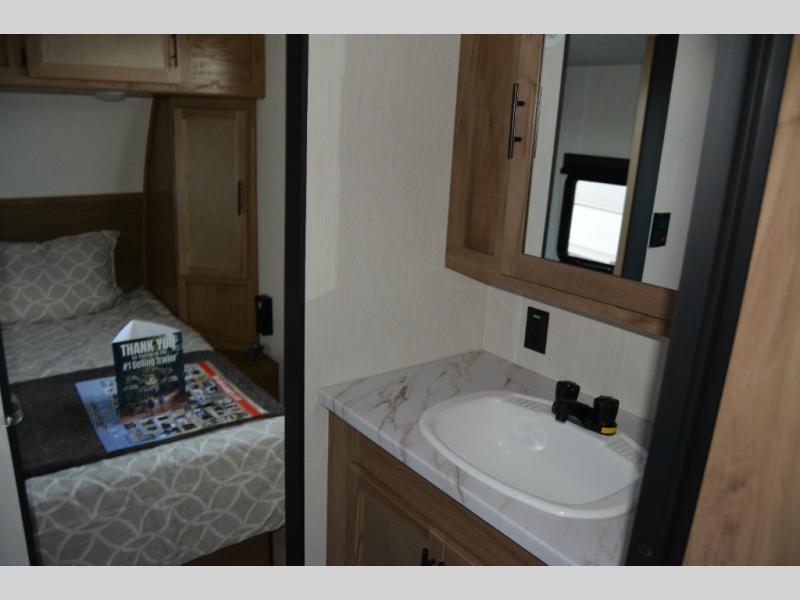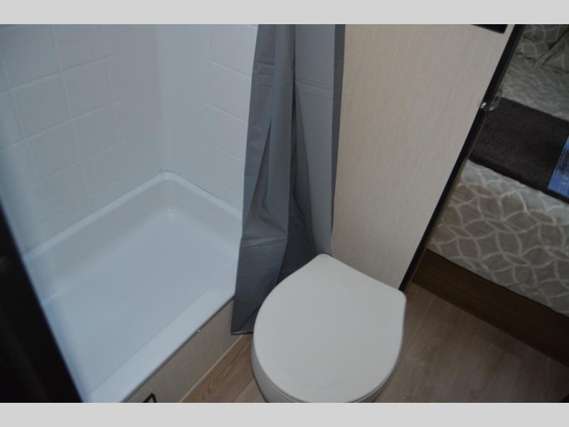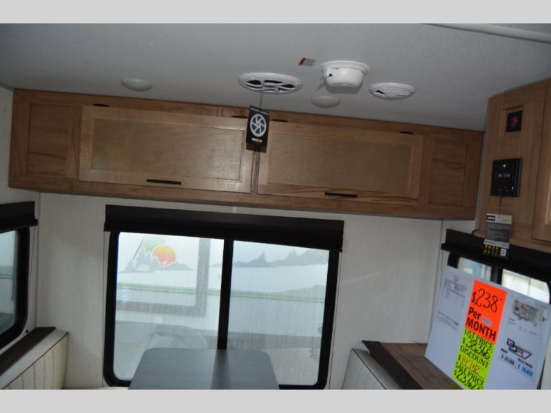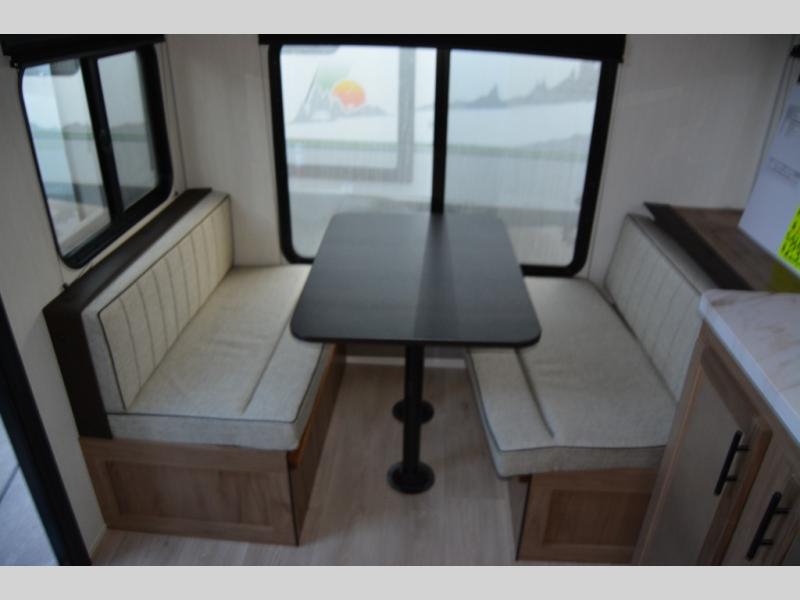 Convenient camping is found with this lightweight travel trailer! Once you arrive at your destination, put out the 15' power awning, then make lunch on the exterior mini kitchen. Inside, you can dine at the booth dinette, freshen up in the tub/shower, and sleep soundly on the queen bed in the master bedroom. And you're sure to find plenty of storage spaces both inside and outside, including a rear storage rack!