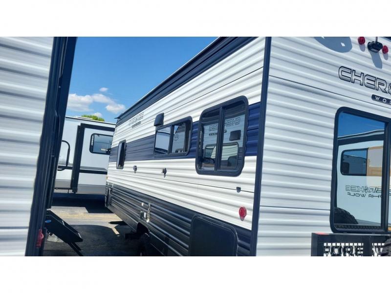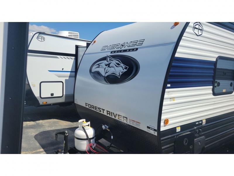 Each one of these Forest River Cherokee Wolf Pup travel trailers are lightweight and easy to tow! They are fully self contained with ample tank capacities, an abundance of storage space, and filled with at home amenities. The aerodynamic smooth radius front profile, the Power Gear frame technology, and the space saver rail design make them easier to maneuver. You will also appreciate the seamless roofing membrane with heat reflectivity to keep the sun from making your unit a hot box. The tongue and groove plywood flooring will hold up for years of fun and the USB charging stations help to keep your electronics at 100% while you're away. Come find the best model for you today!