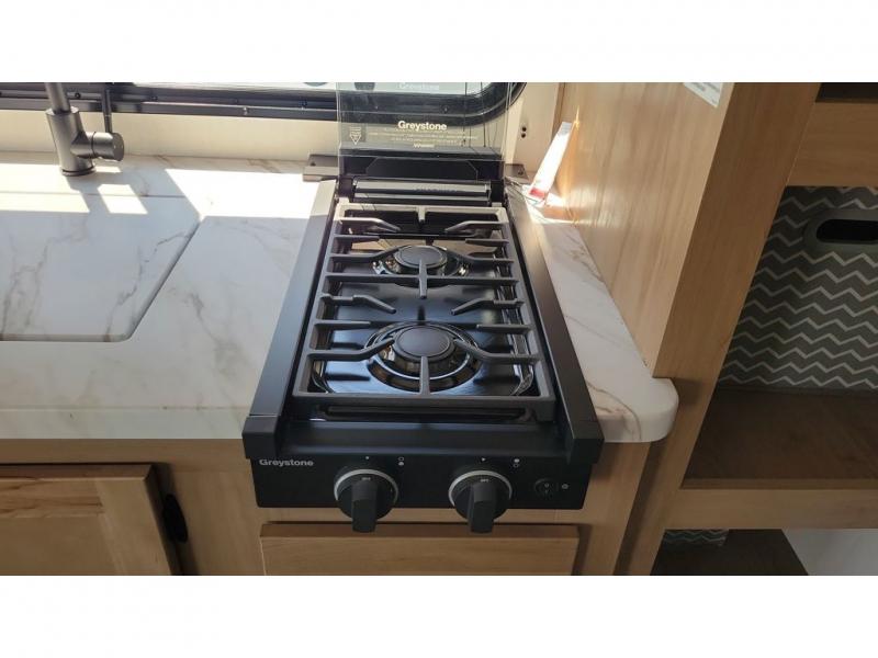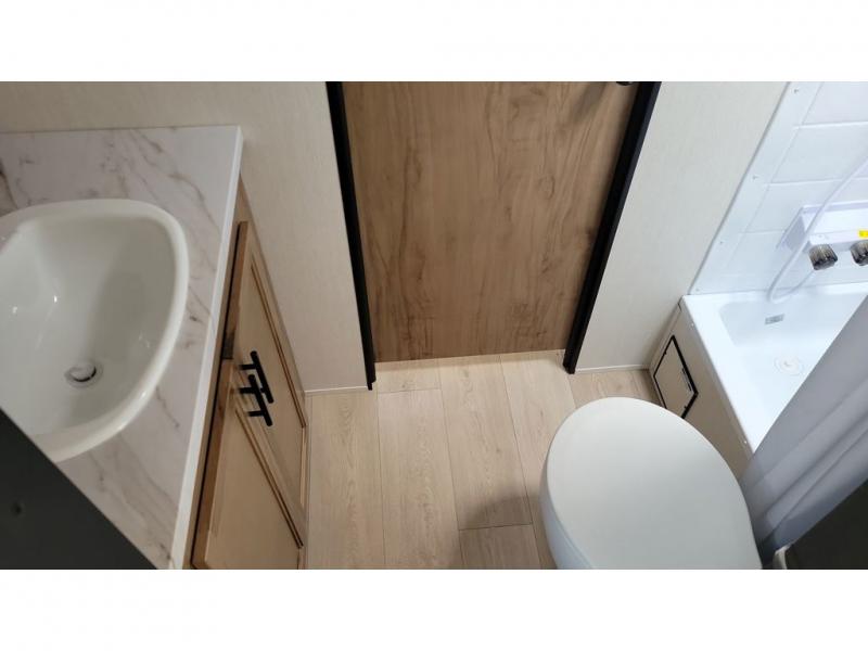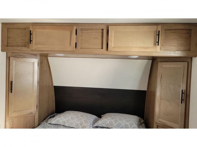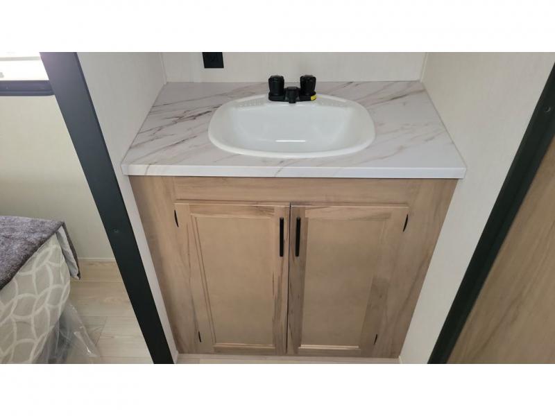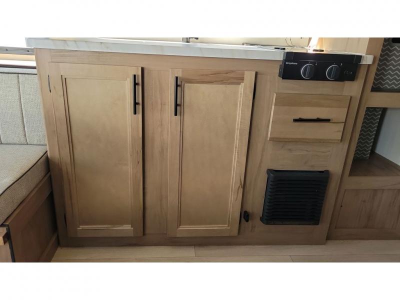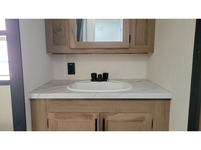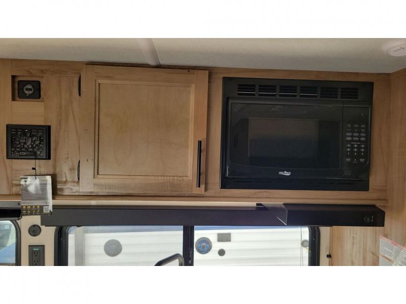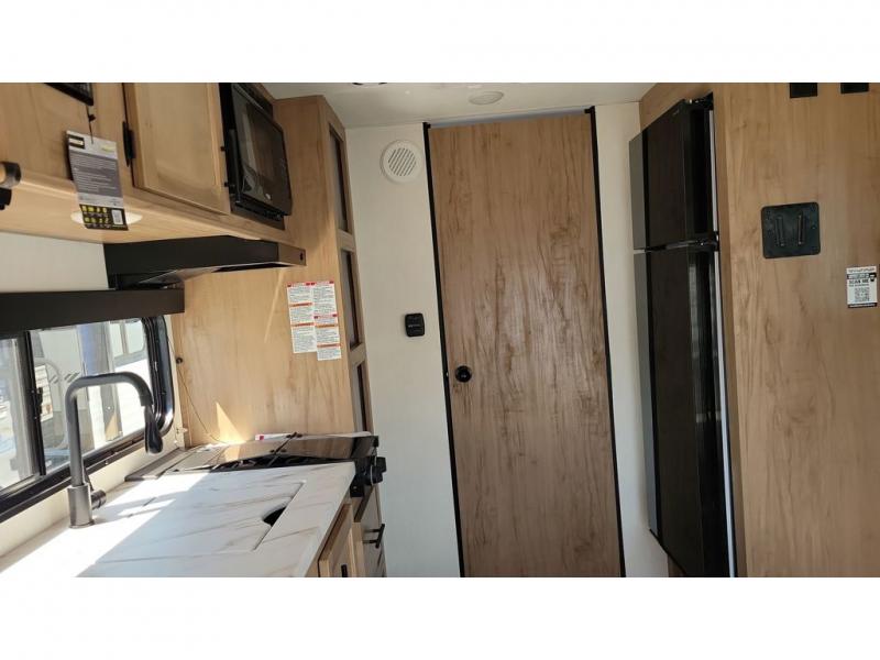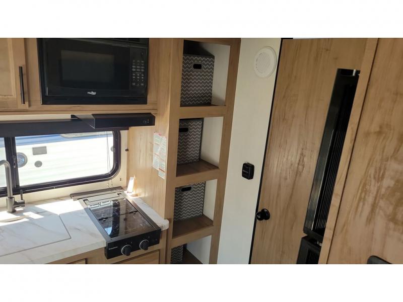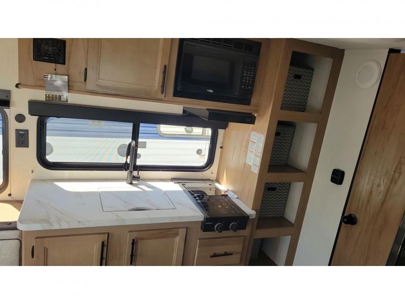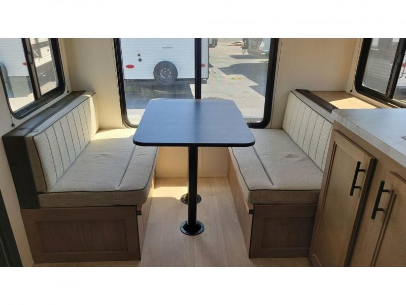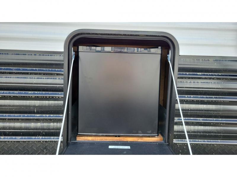 Convenient camping is found with this lightweight travel trailer! Once you arrive at your destination, put out the 15' power awning, then make lunch on the exterior mini kitchen. Inside, you can dine at the booth dinette, freshen up in the tub/shower, and sleep soundly on the queen bed in the master bedroom. And you're sure to find plenty of storage spaces both inside and outside, including a rear storage rack!