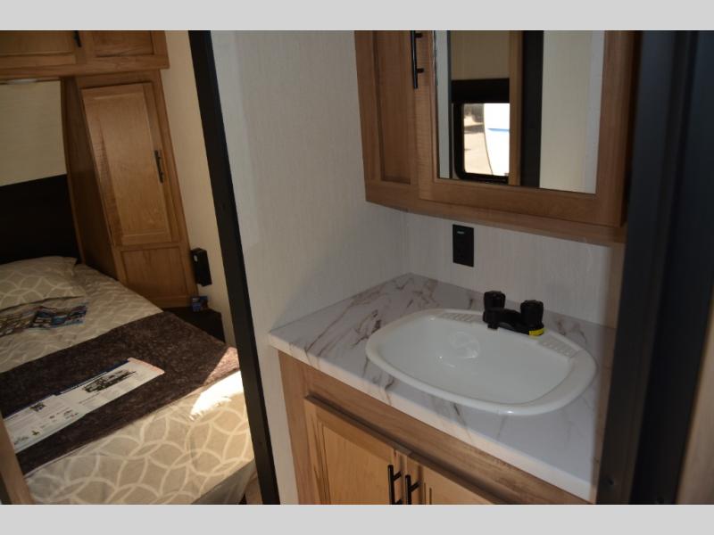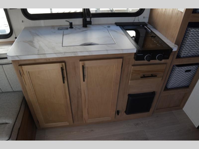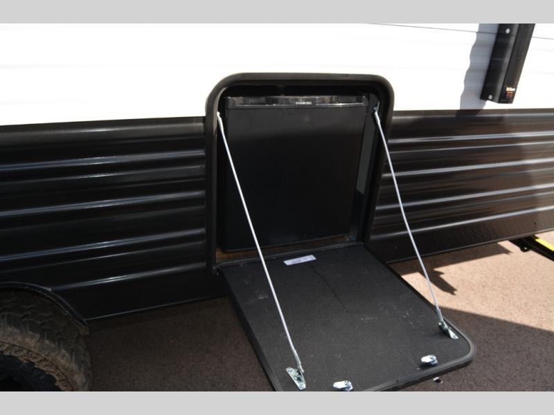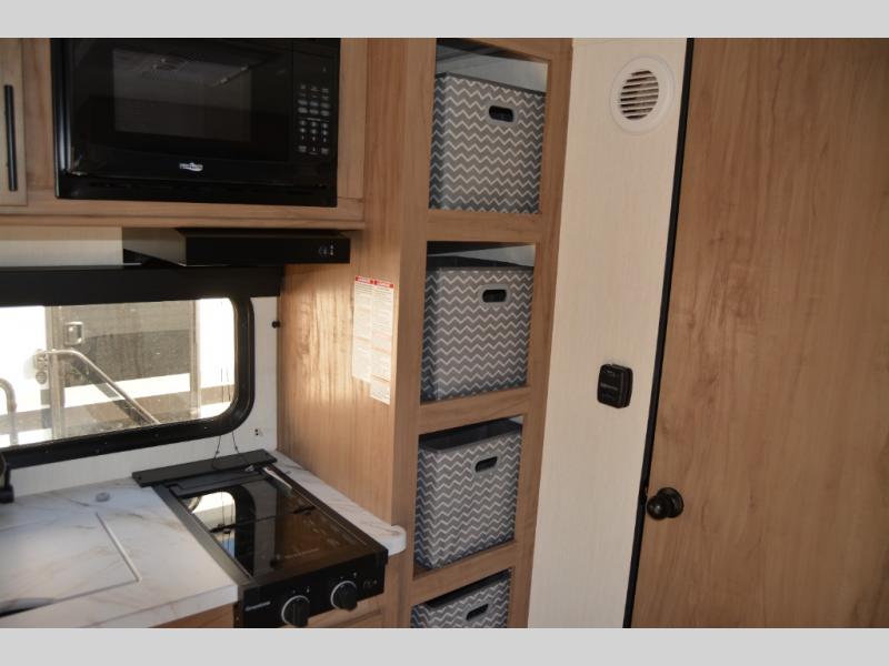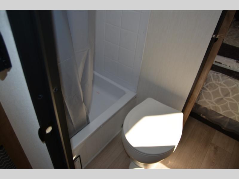 Convenient camping is found with this lightweight travel trailer! Once you arrive at your destination, put out the 15' power awning, then make lunch on the exterior mini kitchen. Inside, you can dine at the booth dinette, freshen up in the tub/shower, and sleep soundly on the queen bed in the master bedroom. And you're sure to find plenty of storage spaces both inside and outside, including a rear storage rack!