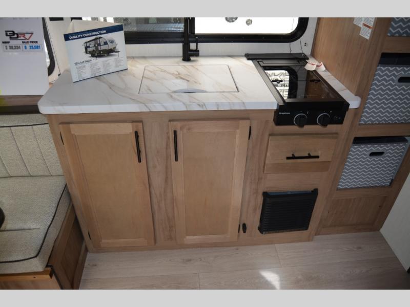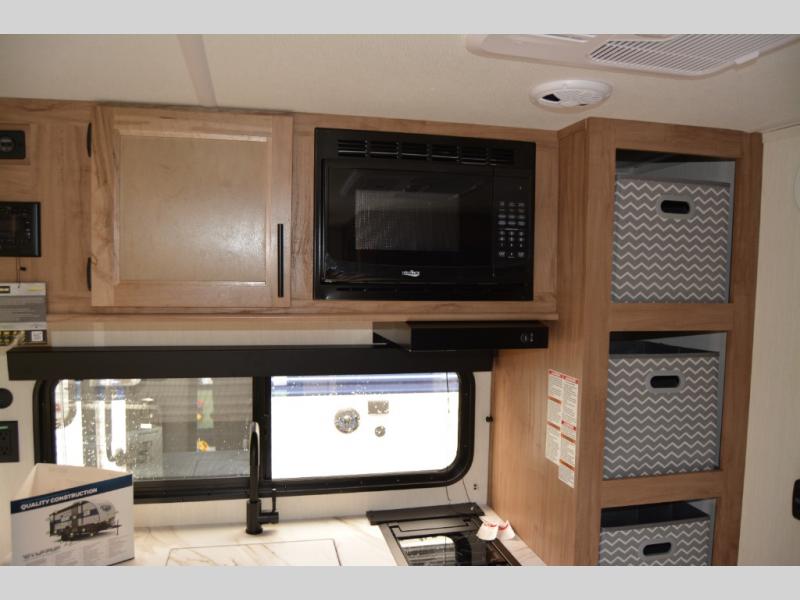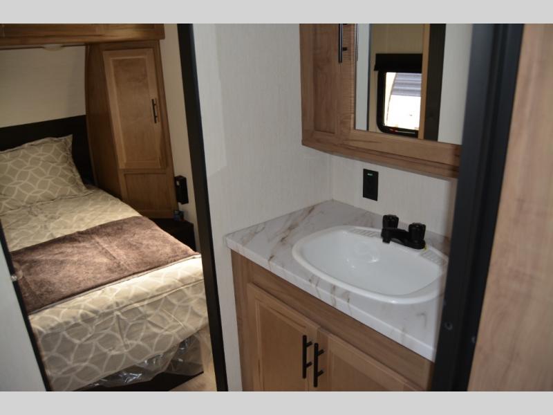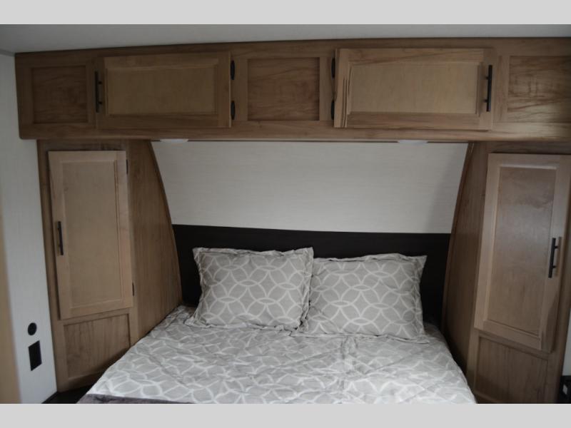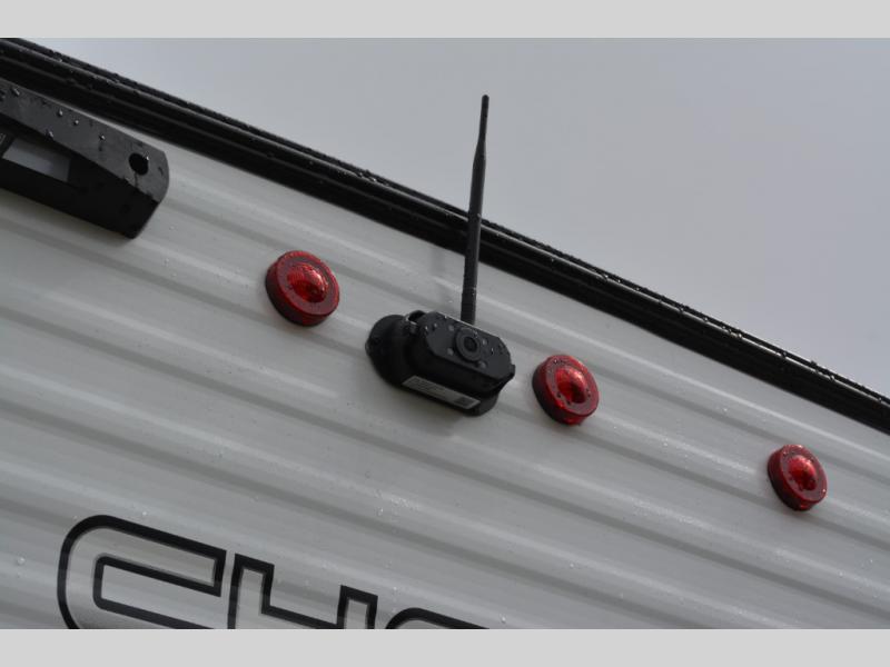 Convenient camping is found with this lightweight travel trailer! Once you arrive at your destination, put out the 15' power awning, then make lunch on the exterior mini kitchen. Inside, you can dine at the booth dinette, freshen up in the tub/shower, and sleep soundly on the queen bed in the master bedroom. And you're sure to find plenty of storage spaces both inside and outside, including a rear storage rack!