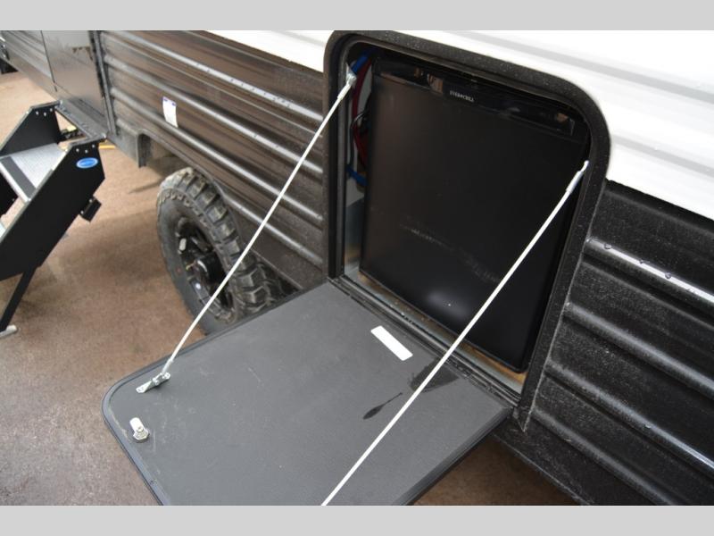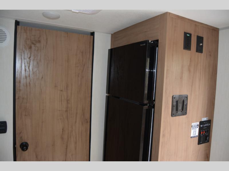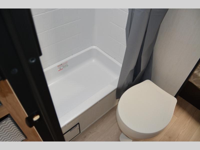 Convenient camping is found with this lightweight travel trailer! Once you arrive at your destination, put out the 15' power awning, then make lunch on the exterior mini kitchen. Inside, you can dine at the booth dinette, freshen up in the tub/shower, and sleep soundly on the queen bed in the master bedroom. And you're sure to find plenty of storage spaces both inside and outside, including a rear storage rack!