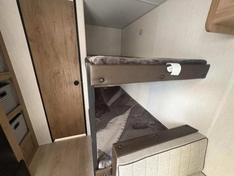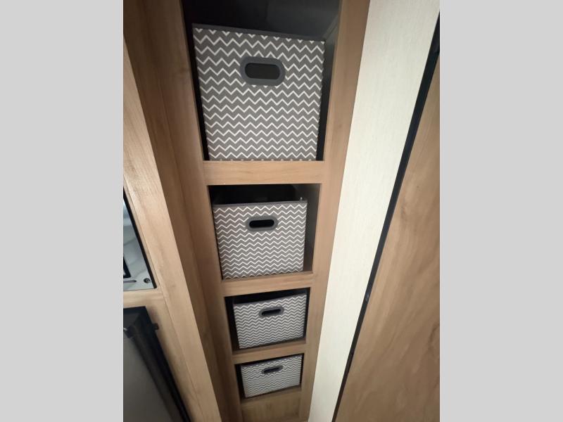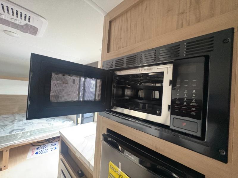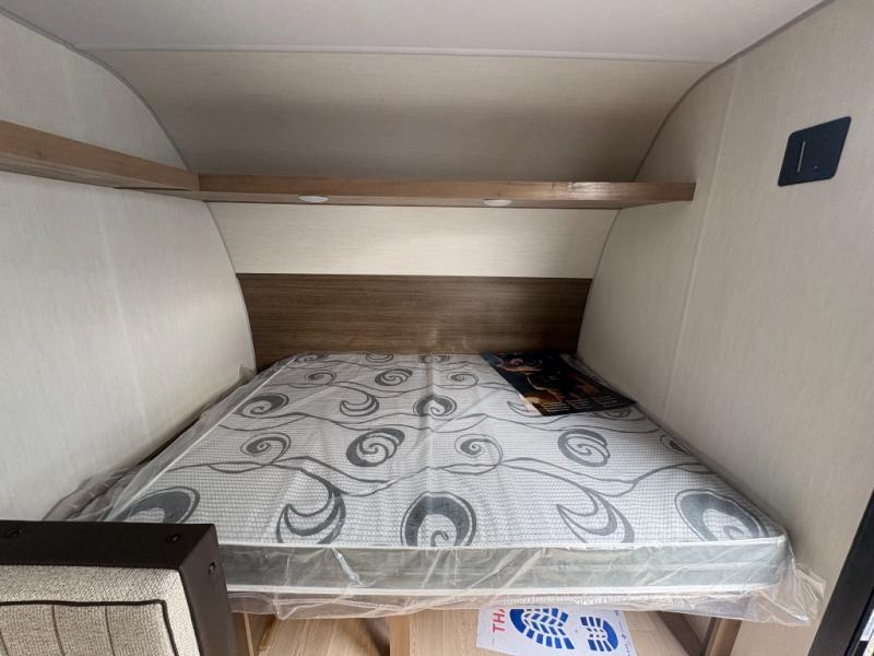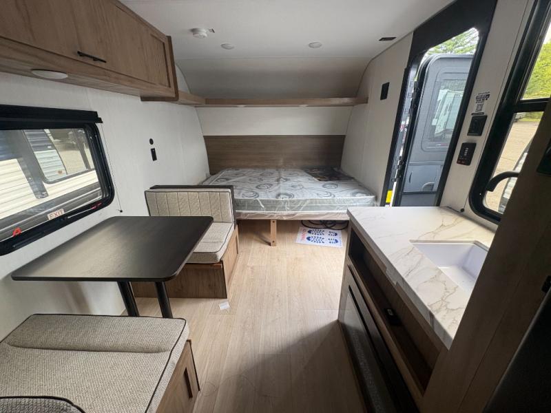 Step inside and you’ll immediately notice how bright and open this RV feels. The thoughtfully designed layout maximizes every inch of space, giving you a comfortable sleeping area, functional kitchenette, and a cozy dinette for meals or game nights. With its all-electric setup, you’ll enjoy quiet operation, reduced emissions, and the ability to power your adventures with clean energy when paired with solar. This means more time off-grid and less time worrying about hookups.