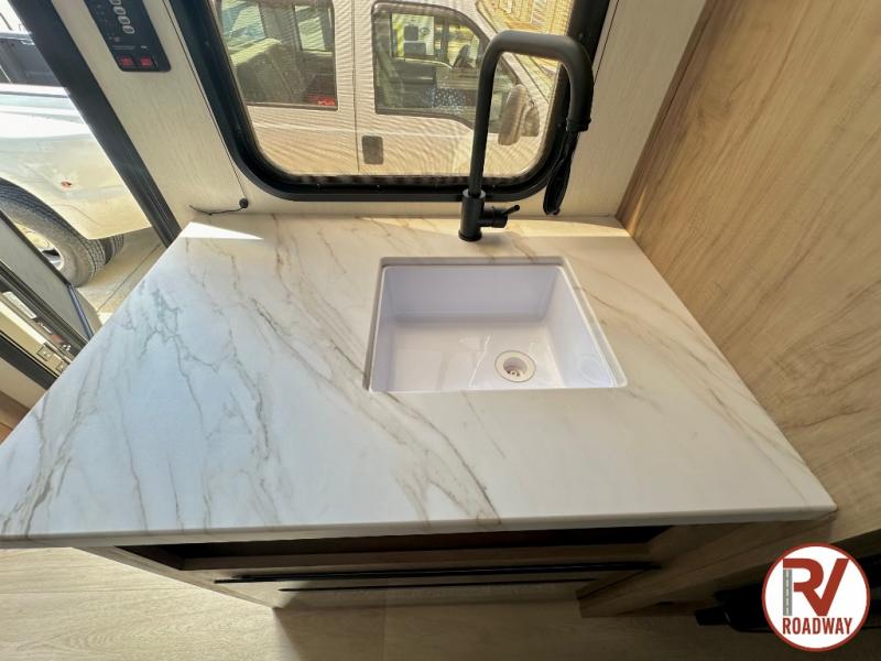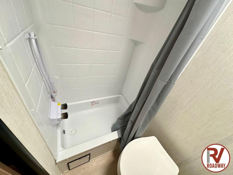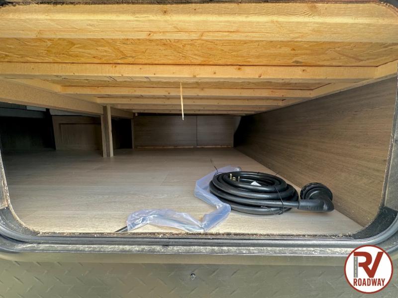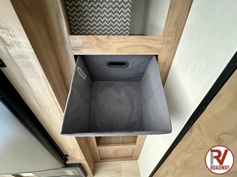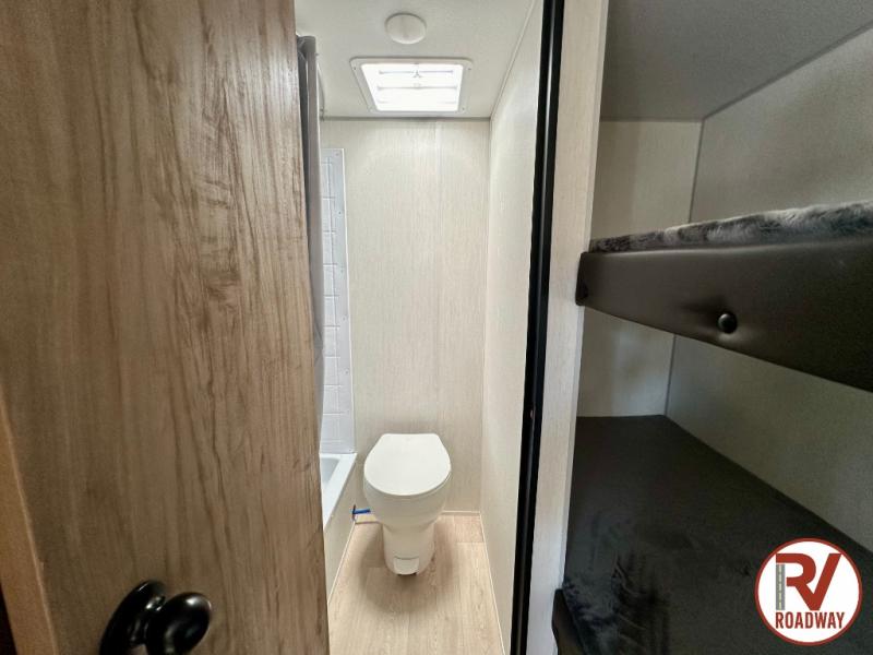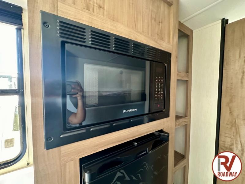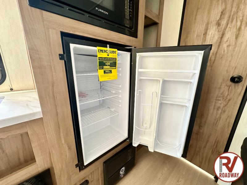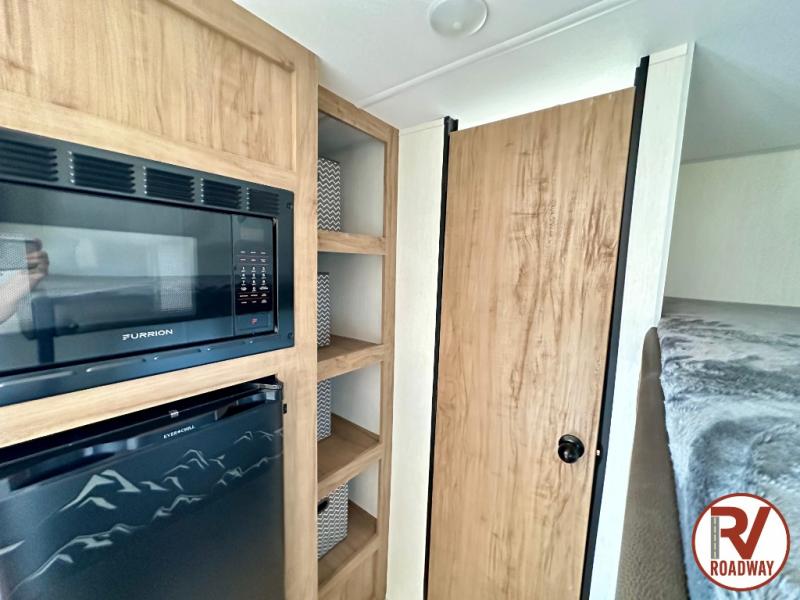 Enjoy family adventures in this all-electric bunk model which features sleeping for four or six depending on size with a queen bed up front, oversized bunks in the rear roadside corner, and you could even convert the booth dinette to sleep more. Inside, you will find ample storage with overhead cabinets and a large shelf above the queen bed, plus four shelves next to the refrigerator and microwave/air fryer that feature decorative storage bins for your things. Use this space for pantry items, towels, or clothing storage. There is even a fireplace below the counter and sink to bring you a bit of heat on those chilly nights. On the outside, you will also find a 12' awning and plenty of outside storage for your camping gear, plus more!
