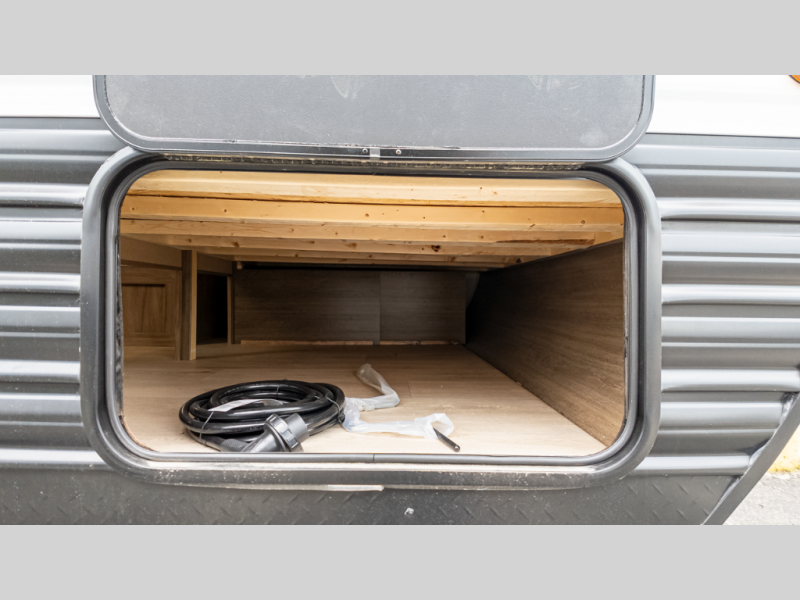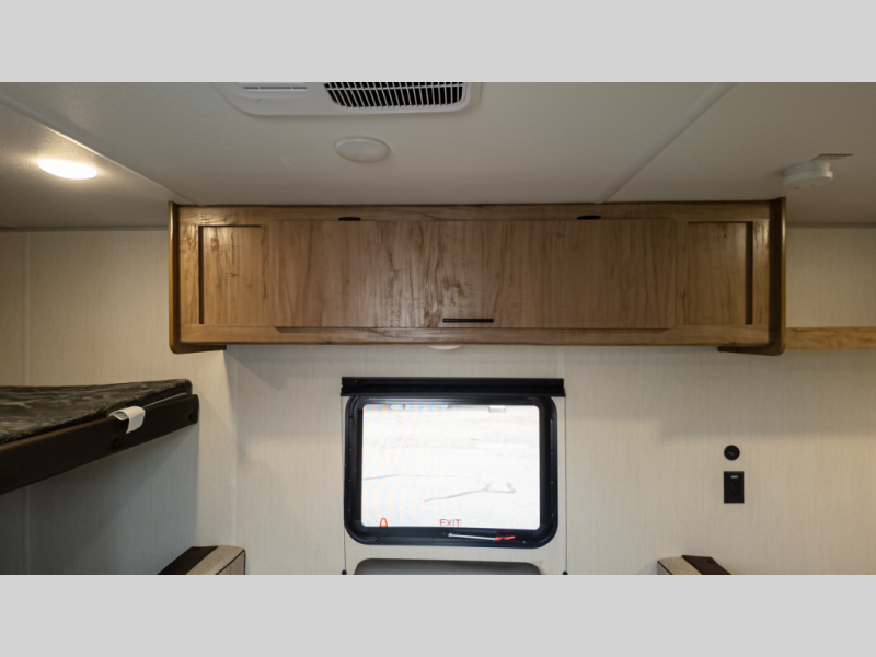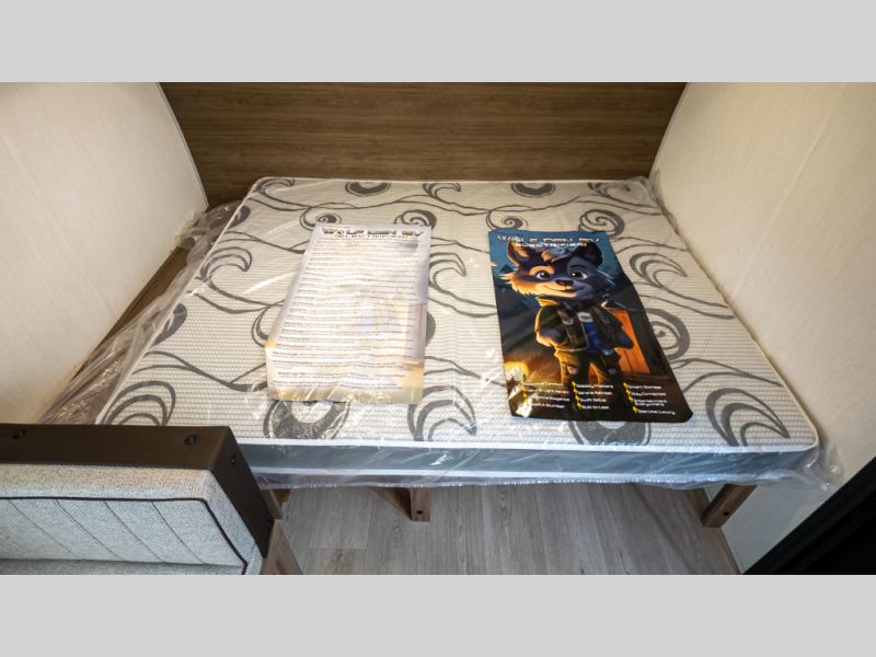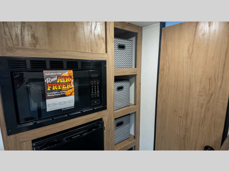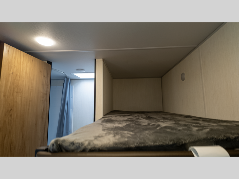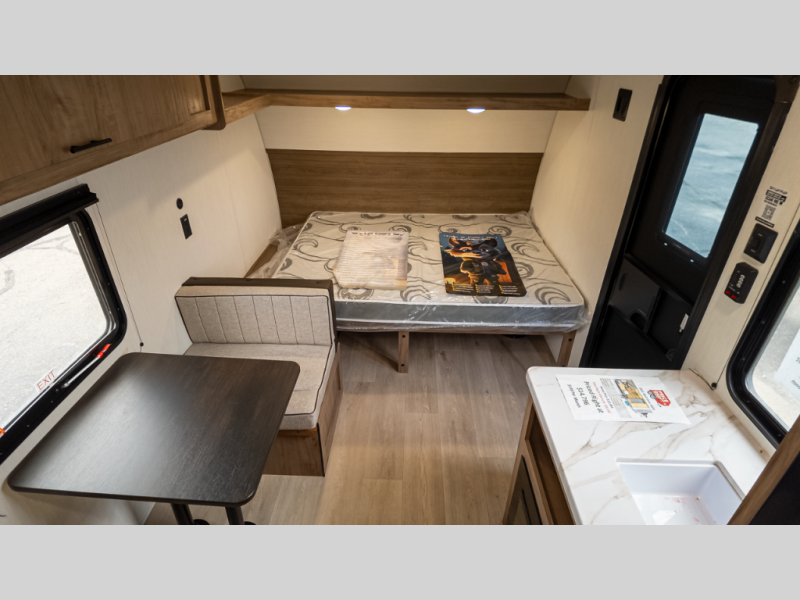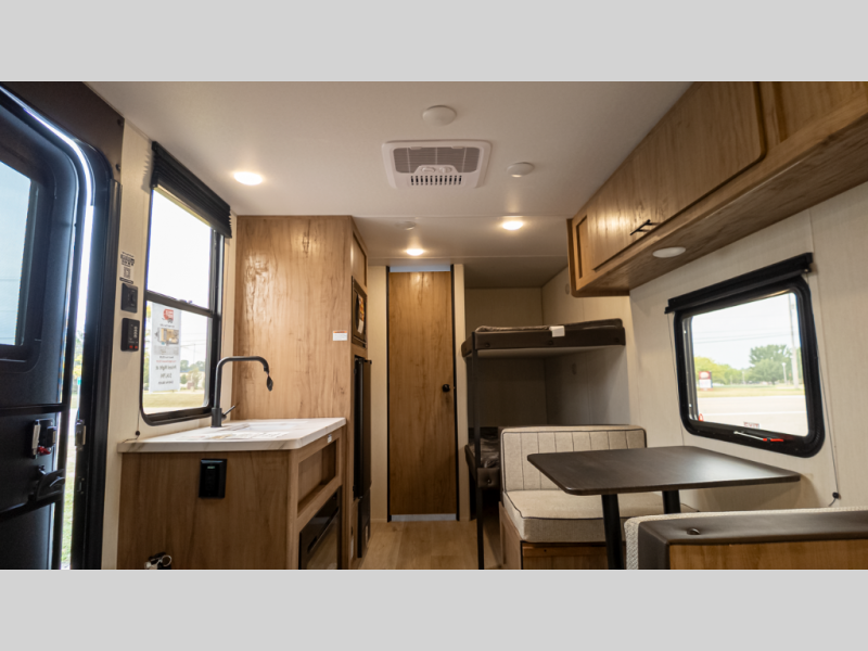 - Special Features: Queen bed, double bunks, all-electric convection microwave/air-fryer oven, 5,000 BTU electric fireplace, solar prep, tankless water heater, dinette conversion