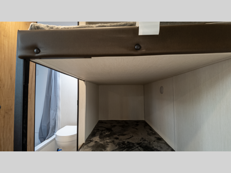 - Queen bed plus rear bunk beds and dinette sleeper—for flexible sleeping