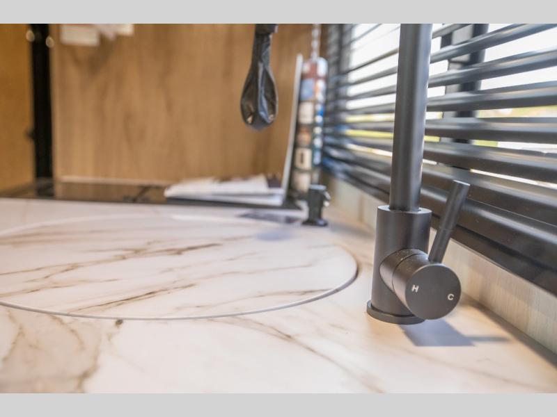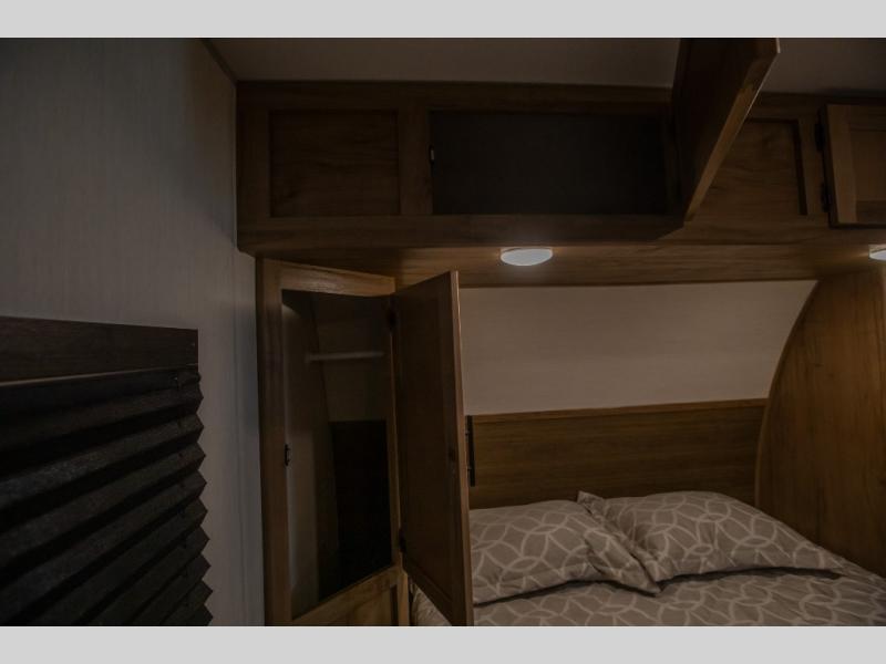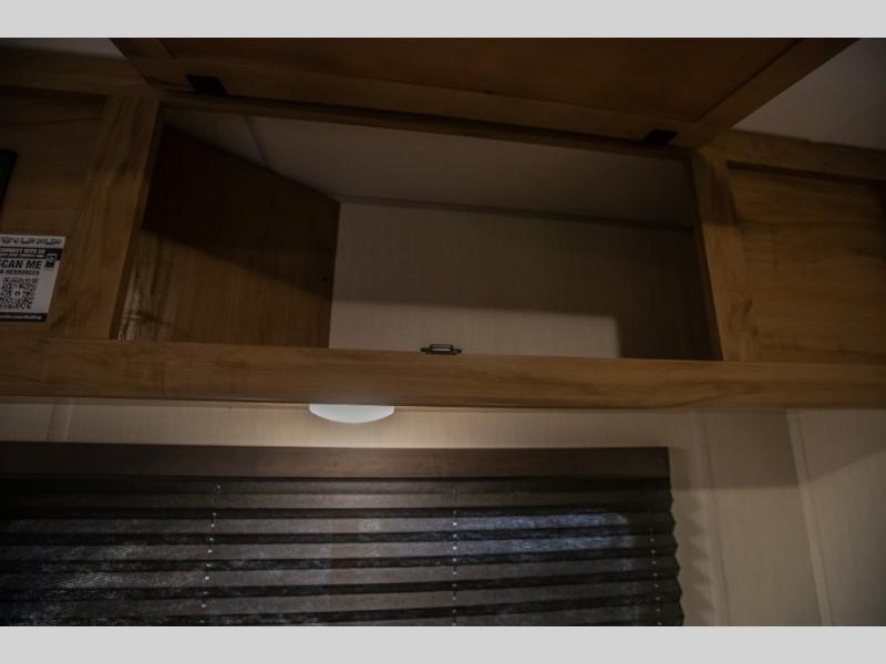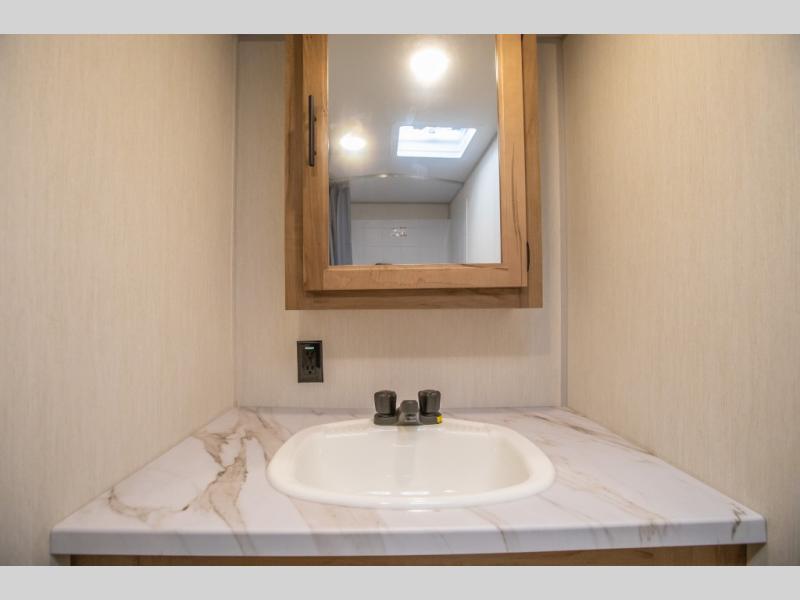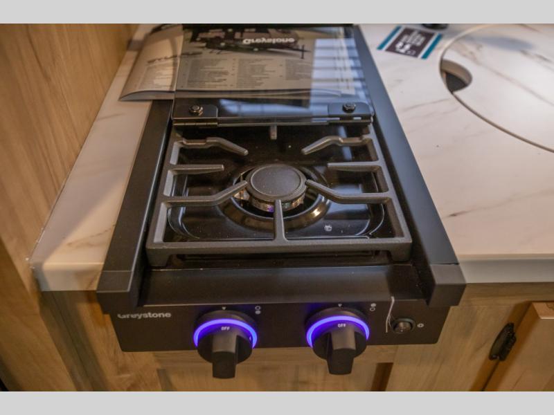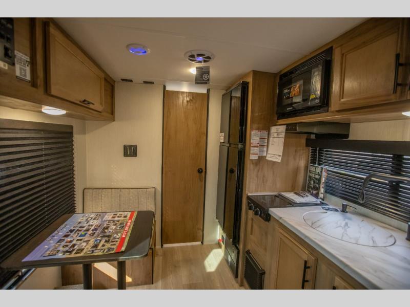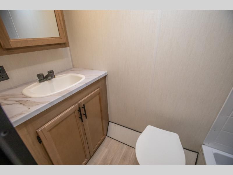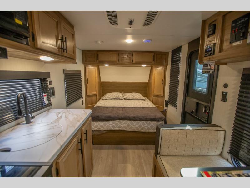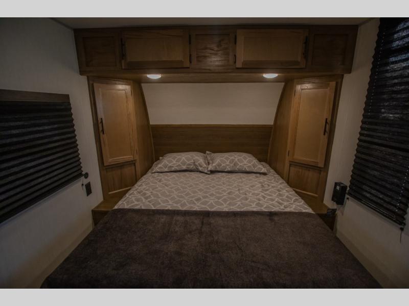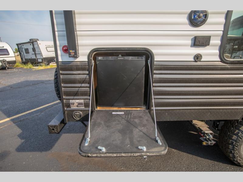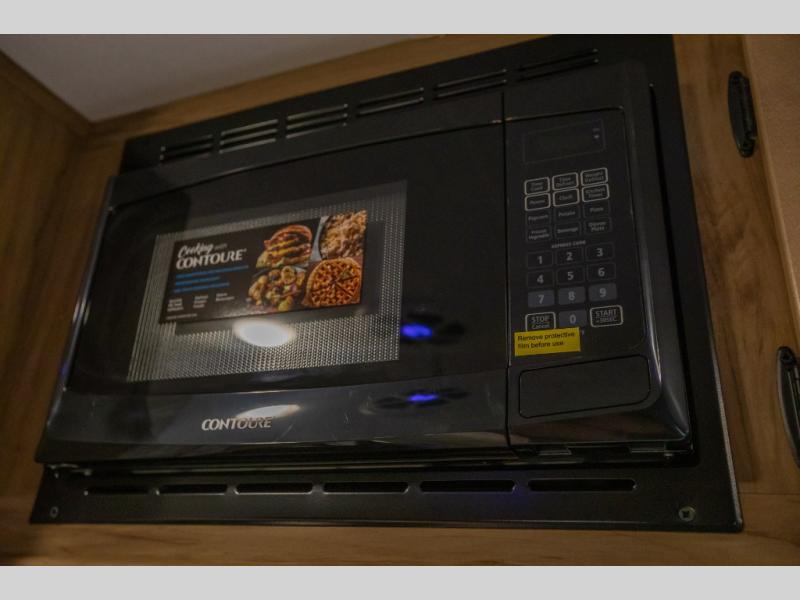 You will love camping in this travel trailer with a front queen bed. Freshen up each morning in the full rear bathroom with the tub/shower, a toilet, and sink. Fill your bellies with the perishables stored in the 11 cu. ft. 12V high efficiency residential refrigerator and cook them on the high output cooktop then enjoy them at the booth dinette. You could even prepare a meal while breathing in some fresh air at the outside mini kitchen while staying protected by the 12' power awning. Easily store all of your outdoor gear in the outside storage area too!