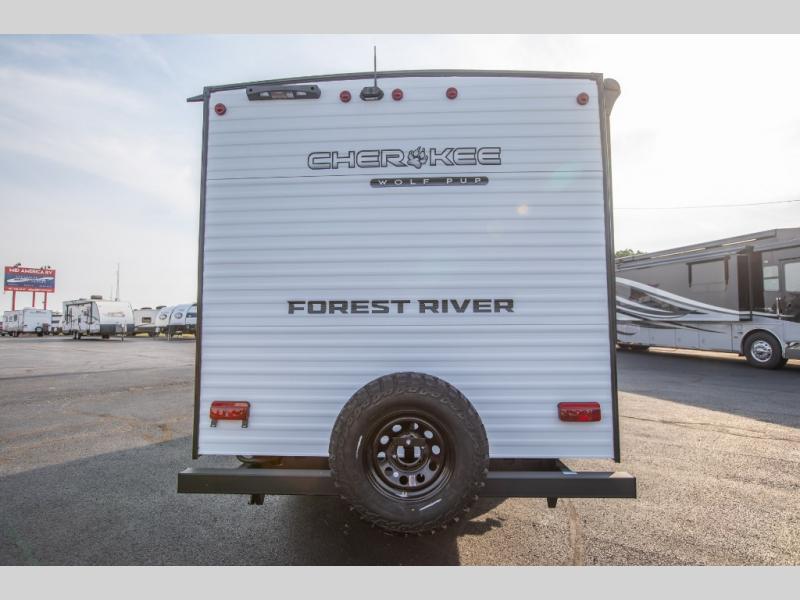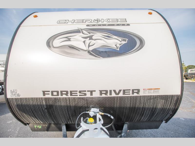 Each one of these Forest River Cherokee Wolf Pup travel trailers are lightweight and easy to tow! They are fully self contained with ample tank capacities, an abundance of storage space, and filled with at home amenities. The aerodynamic smooth radius front profile, the Power Gear frame technology, and the space saver rail design make them easier to maneuver. You will also appreciate the seamless roofing membrane with heat reflectivity to keep the sun from making your unit a hot box. The tongue and groove plywood flooring will hold up for years of fun and the USB charging stations help to keep your electronics at 100% while you're away. Come find the best model for you today!
