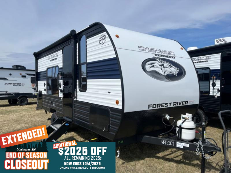 Each one of these Forest River Cherokee Wolf Pup travel trailers are lightweight and easy to tow! They are fully self contained with ample tank capacities, an abundance of storage space, and filled with at home amenities. The aerodynamic smooth radius front profile, the Power Gear frame technology, and the space saver rail design make them easier to maneuver. You will also appreciate the seamless roofing membrane with heat reflectivity to keep the sun from making your unit a hot box. The tongue and groove plywood flooring will hold up for years of fun and the USB charging stations help to keep your electronics at 100% while you're away. Come find the best model for you today!