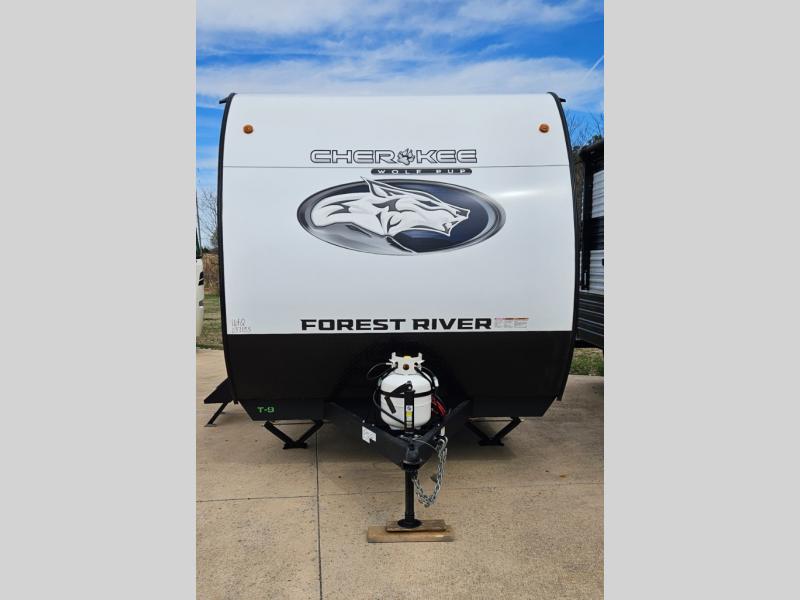 Each one of these Forest River Cherokee Wolf Pup travel trailers are lightweight and easy to tow! They are fully self contained with ample tank capacities, an abundance of storage space, and filled with at home amenities. The aerodynamic smooth radius front profile, the Power Gear frame technology, and the space saver rail design make them easier to maneuver. You will also appreciate the seamless roofing membrane with heat reflectivity to keep the sun from making your unit a hot box. The tongue and groove plywood flooring will hold up for years of fun and the USB charging stations help to keep your electronics at 100% while you're away. Come find the best model for you today!