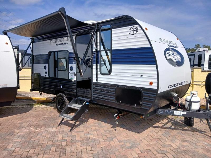 Each one of these Forest River Cherokee Wolf Pup travel trailers are lightweight and easy to tow! They are fully self contained with ample tank capacities, an abundance of storage space, and filled with at home amenities. The aerodynamic smooth radius front profile, the Power Gear frame technology, and the space saver rail design make them easier to maneuver. You will also appreciate the seamless roofing membrane with heat reflectivity to keep the sun from making your unit a hot box. The tongue and groove plywood flooring will hold up for years of fun and the USB charging stations help to keep your electronics at 100% while you're away. Come find the best model for you today!