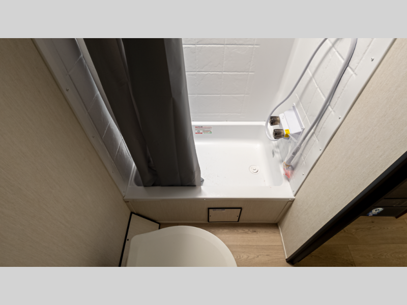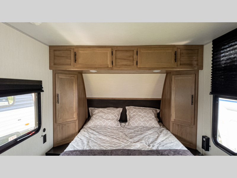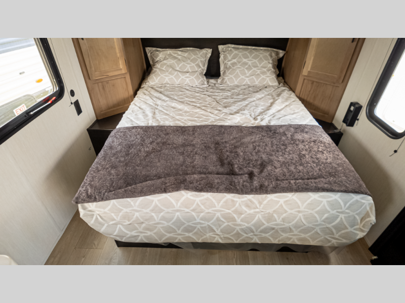 - Bedroom & Bath: Walk-around queen bed, rear tub/shower bathroom