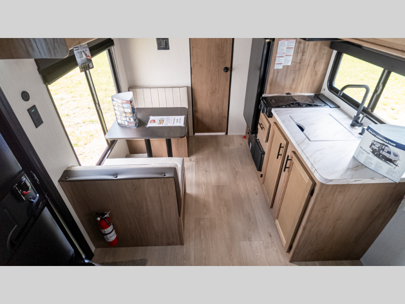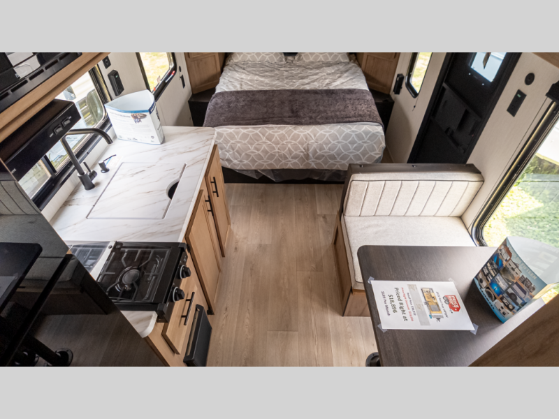 - Comfort: 13,500 BTU A/C, tankless water heater, USB-C charging, Bluetooth stereo