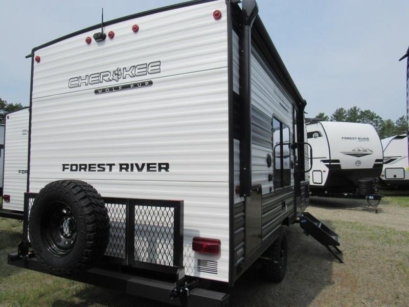Each one of these Forest River Cherokee Wolf Pup travel trailers are lightweight and easy to tow! They are fully self contained with ample tank capacities, an abundance of storage space, and filled with at home amenities. The aerodynamic smooth radius front profile, the Power Gear frame technology, and the space saver rail design make them easier to maneuver. You will also appreciate the seamless roofing membrane with heat reflectivity to keep the sun from making your unit a hot box. The tongue and groove plywood flooring will hold up for years of fun and the USB charging stations help to keep your electronics at 100% while you're away. Come find the best model for you today!