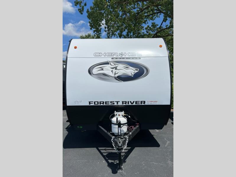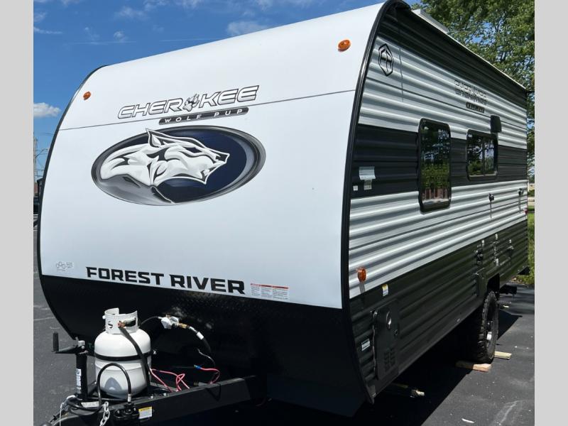 Each one of these Forest River Cherokee Wolf Pup travel trailers are lightweight and easy to tow! They are fully self contained with ample tank capacities, an abundance of storage space, and filled with at home amenities. The aerodynamic smooth radius front profile, the Power Gear frame technology, and the space saver rail design make them easier to maneuver. You will also appreciate the seamless roofing membrane with heat reflectivity to keep the sun from making your unit a hot box. The tongue and groove plywood flooring will hold up for years of fun and the USB charging stations help to keep your electronics at 100% while you're away. Come find the best model for you today!