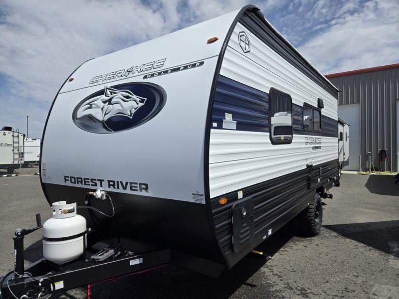 Each one of these Forest River Cherokee Wolf Pup travel trailers are lightweight and easy to tow! They are fully self contained with ample tank capacities, an abundance of storage space, and filled with at home amenities. The aerodynamic smooth radius front profile, the Power Gear frame technology, and the space saver rail design make them easier to maneuver. You will also appreciate the seamless roofing membrane with heat reflectivity to keep the sun from making your unit a hot box. The tongue and groove plywood flooring will hold up for years of fun and the USB charging stations help to keep your electronics at 100% while you're away. Come find the best model for you today!