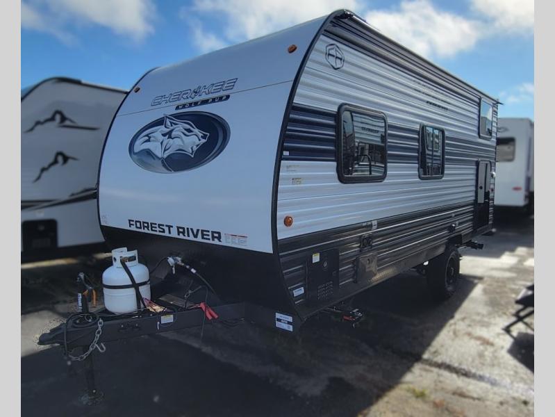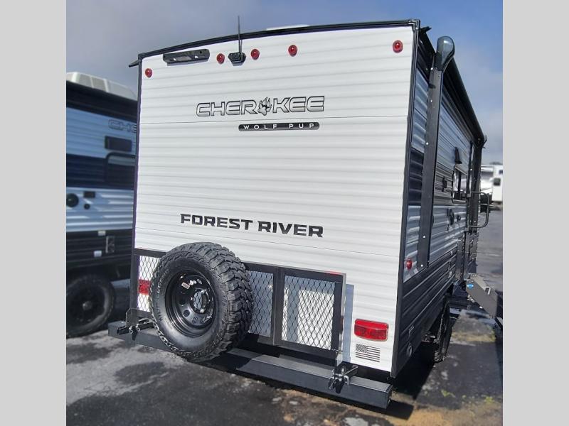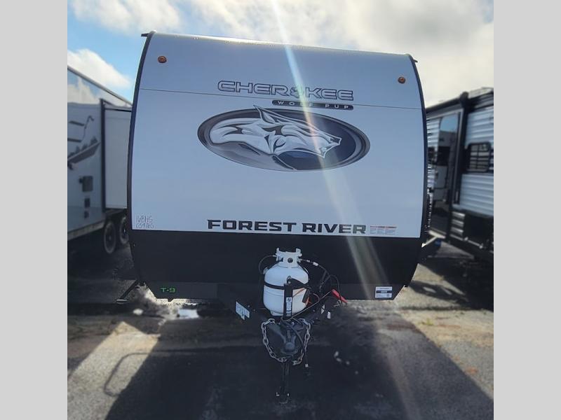 Each one of these Forest River Cherokee Wolf Pup travel trailers are lightweight and easy to tow! They are fully self contained with ample tank capacities, an abundance of storage space, and filled with at home amenities. The aerodynamic smooth radius front profile, the Power Gear frame technology, and the space saver rail design make them easier to maneuver. You will also appreciate the seamless roofing membrane with heat reflectivity to keep the sun from making your unit a hot box. The tongue and groove plywood flooring will hold up for years of fun and the USB charging stations help to keep your electronics at 100% while you're away. Come find the best model for you today!