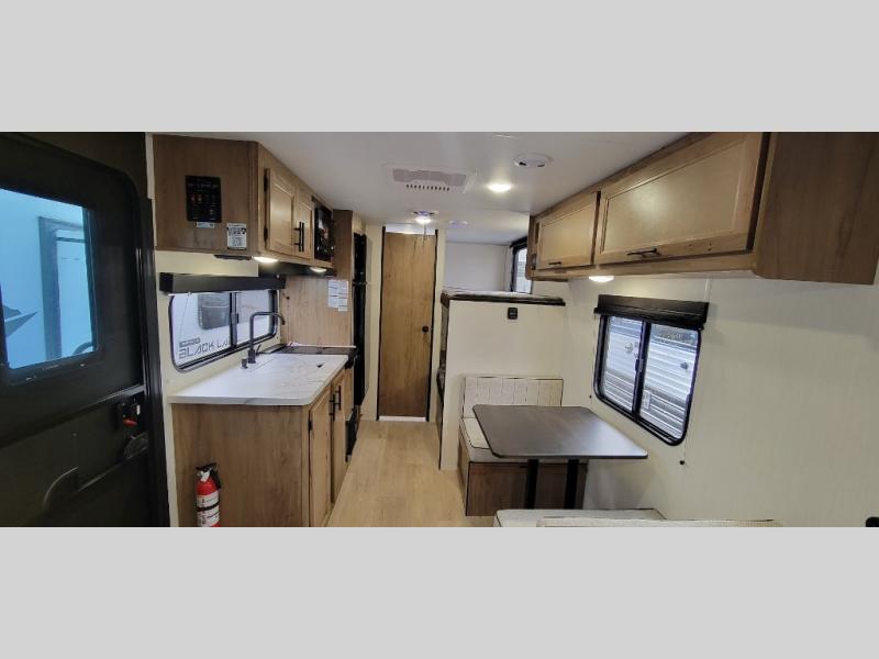 Every camping trip in this travel trailer is sure to be memorable. You will have a front queen bed to sleep on, while your guests take the U-shaped dinette when it's not being used to dine at. The kitchen provides a microwave oven, round single bowl sink, a range for cooking, and a 12 volt residential refrigerator to keep all of your perishables fresh. The rear bath features a tub/shower, toilet, and vanity with sink, plus a medicine cabinet to keep this space tidy.