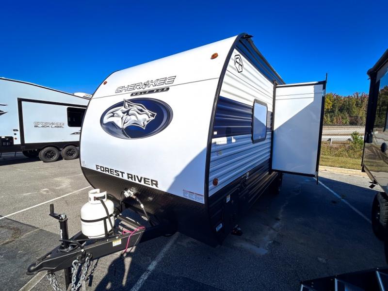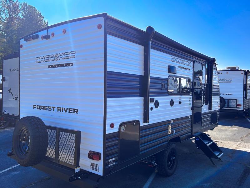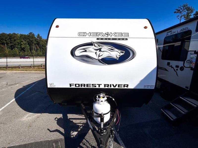 Each one of these Forest River Cherokee Wolf Pup travel trailers are lightweight and easy to tow! They are fully self contained with ample tank capacities, an abundance of storage space, and filled with at home amenities. The aerodynamic smooth radius front profile, the Power Gear frame technology, and the space saver rail design make them easier to maneuver. You will also appreciate the seamless roofing membrane with heat reflectivity to keep the sun from making your unit a hot box. The tongue and groove plywood flooring will hold up for years of fun and the USB charging stations help to keep your electronics at 100% while you're away. Come find the best model for you today!