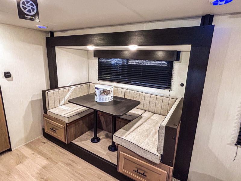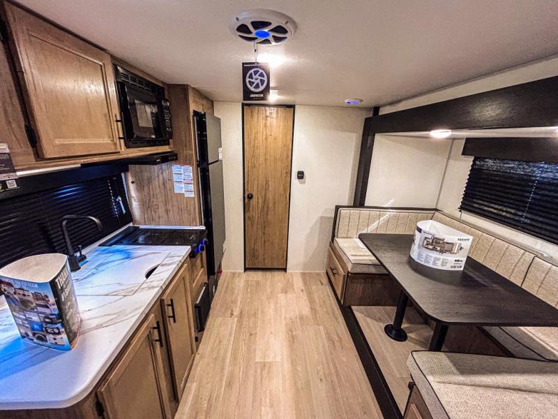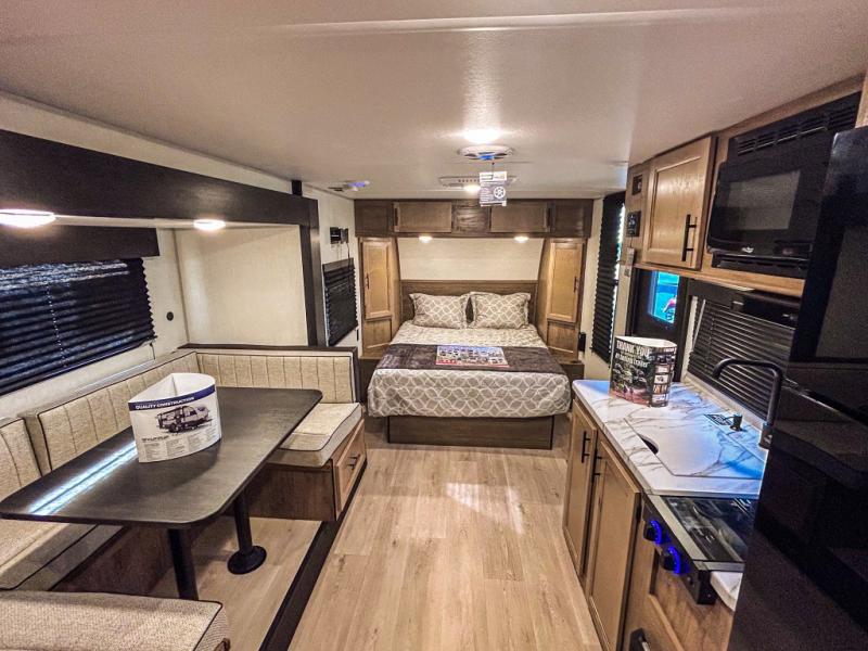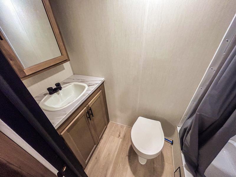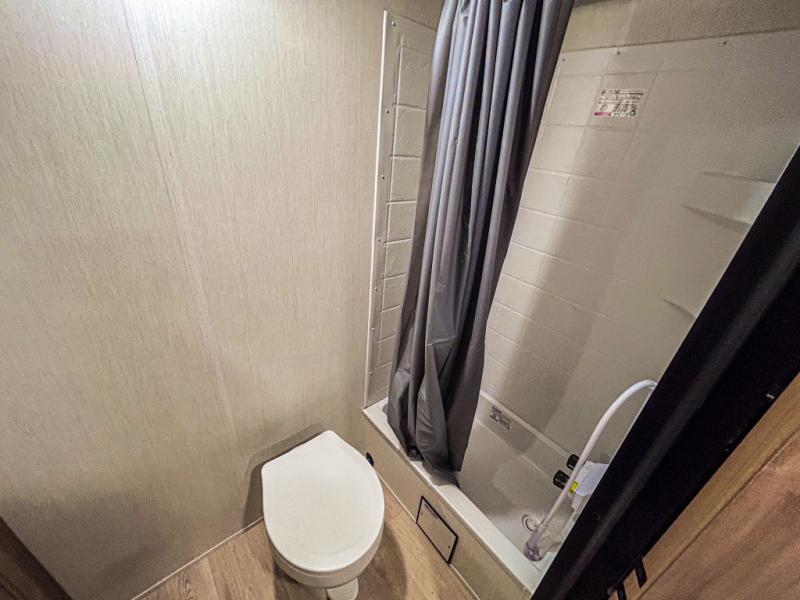 Every camping trip in this travel trailer is sure to be memorable. You will have a front queen bed to sleep on, while your guests take the U-shaped dinette when it's not being used to dine at. The kitchen provides a microwave oven, round single bowl sink, a range for cooking, and a 12 volt residential refrigerator to keep all of your perishables fresh. The rear bath features a tub/shower, toilet, and vanity with sink, plus a medicine cabinet to keep this space tidy.