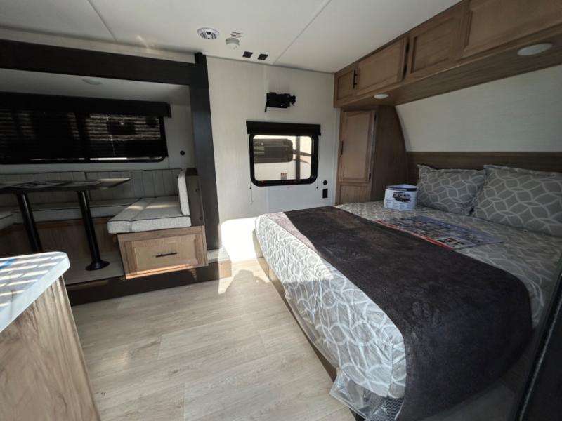 Every camping trip in this travel trailer is sure to be memorable. You will have a front queen bed to sleep on, while your guests take the U-shaped dinette when it's not being used to dine at. The kitchen provides a microwave oven, round single bowl sink, a range for cooking, and a 12 volt residential refrigerator to keep all of your perishables fresh. The rear bath features a tub/shower, toilet, and vanity with sink, plus a medicine cabinet to keep this space tidy.