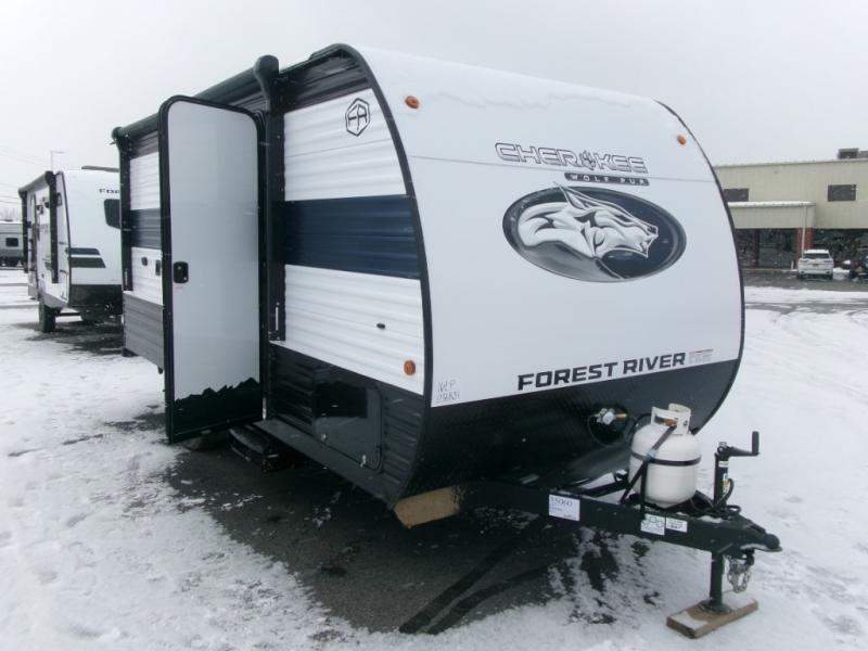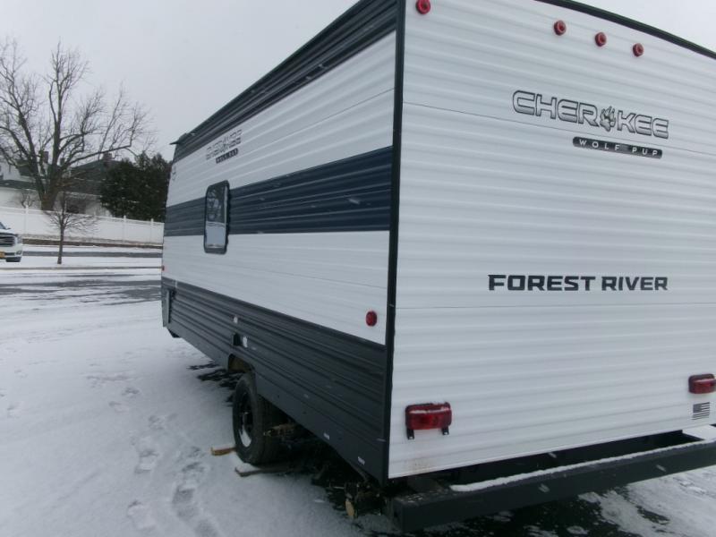 Each one of these Forest River Cherokee Wolf Pup travel trailers are lightweight and easy to tow! They are fully self contained with ample tank capacities, an abundance of storage space, and filled with at home amenities. The aerodynamic smooth radius front profile, the Power Gear frame technology, and the space saver rail design make them easier to maneuver. You will also appreciate the seamless roofing membrane with heat reflectivity to keep the sun from making your unit a hot box. The tongue and groove plywood flooring will hold up for years of fun and the USB charging stations help to keep your electronics at 100% while you're away. Come find the best model for you today!