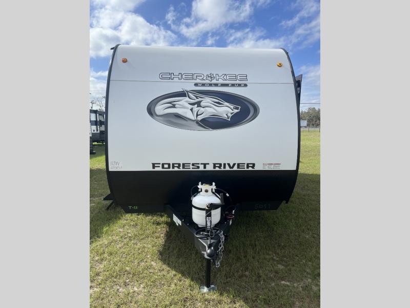 Each one of these Forest River Cherokee Wolf Pup travel trailers are lightweight and easy to tow! They are fully self contained with ample tank capacities, an abundance of storage space, and filled with at home amenities. The aerodynamic smooth radius front profile, the Power Gear frame technology, and the space saver rail design make them easier to maneuver. You will also appreciate the seamless roofing membrane with heat reflectivity to keep the sun from making your unit a hot box. The tongue and groove plywood flooring will hold up for years of fun and the USB charging stations help to keep your electronics at 100% while you're away. Come find the best model for you today!