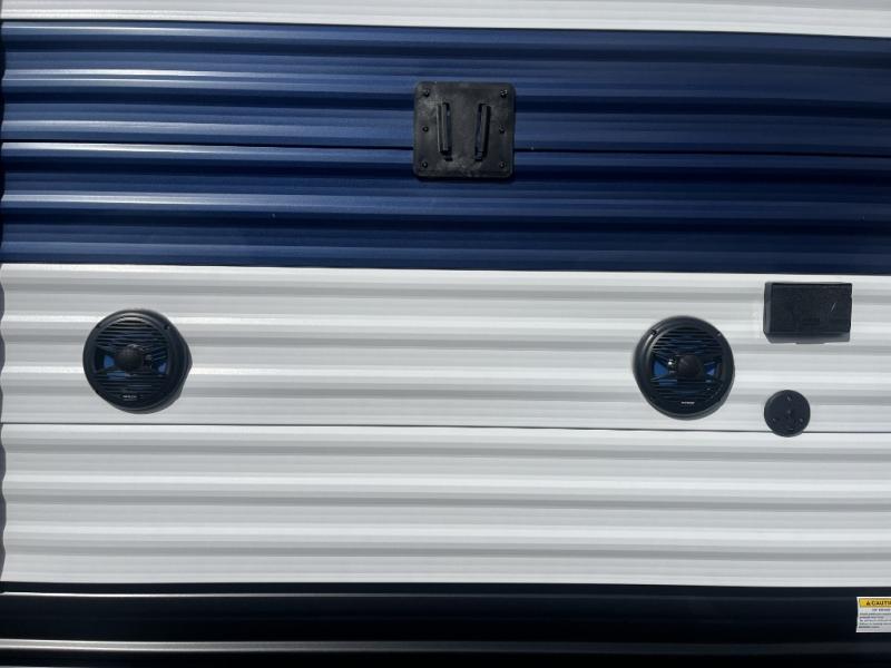This family travel trailer is ready to head to the campground whenever you are! The kiddos can sleep on the set of double-size bed bunks and you can sleep on the front queen bed, plus the U-shaped dinette slide can also transform into an extra sleeping space when you aren't using it to enjoy a meal prepared with the high output cooktop. You can also prepare your delicious meals at the outside mini kitchen and stay protected by the power awning. The exterior not only has outside storage and an outside TV mount, but also features an outside storage plus door for access to the storage space underneath the bottom bunk bed. The rear corner bath allows everyone to stay clean and refreshed while you camp.