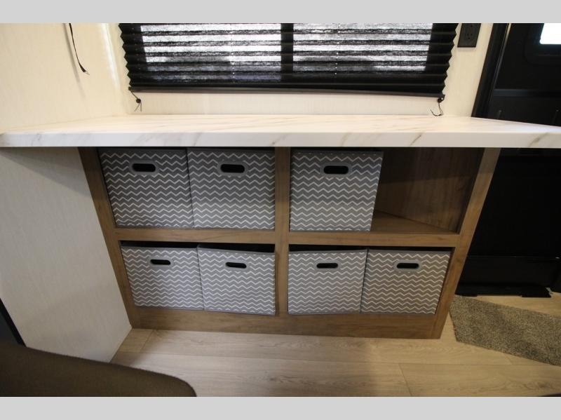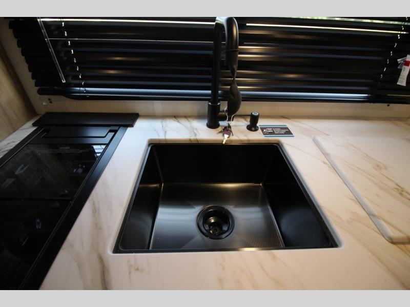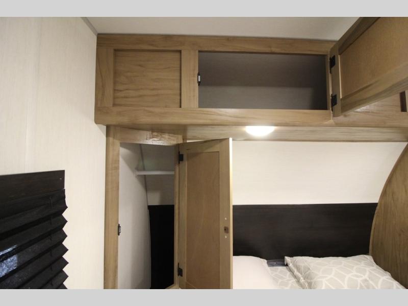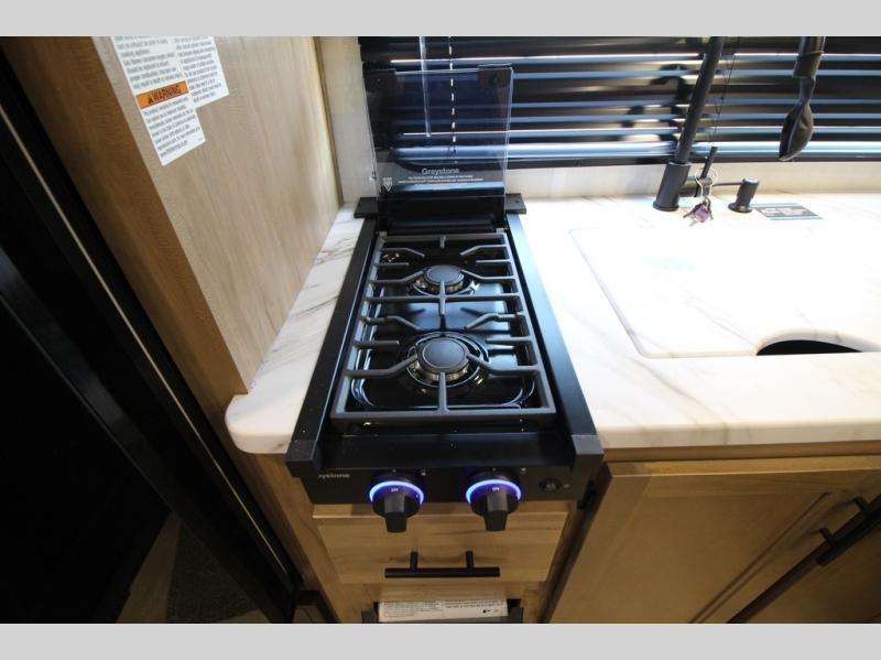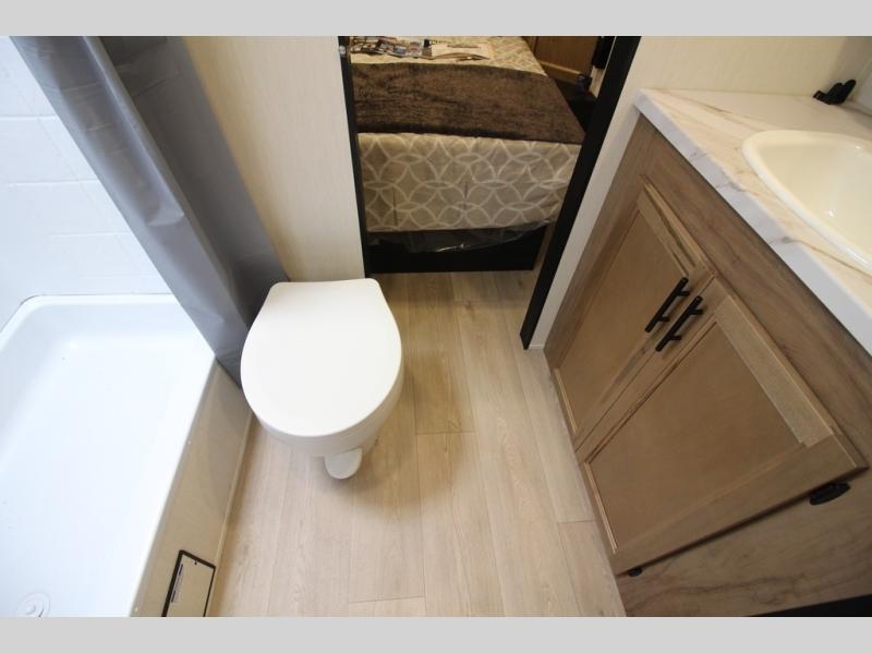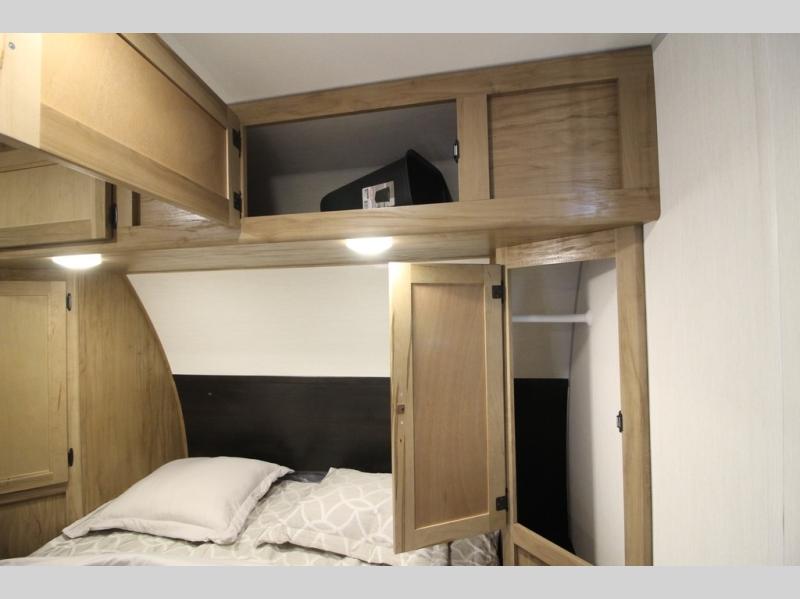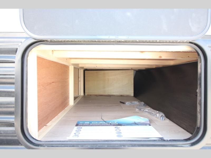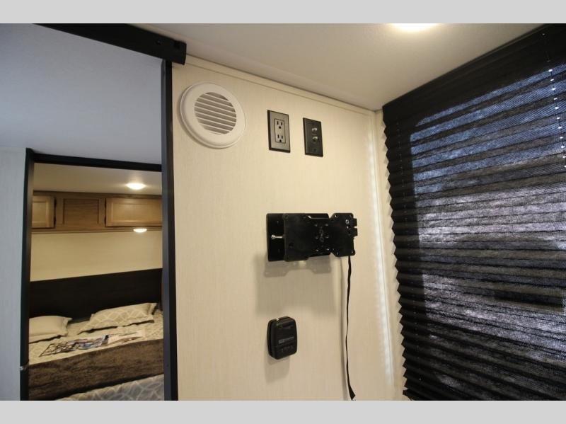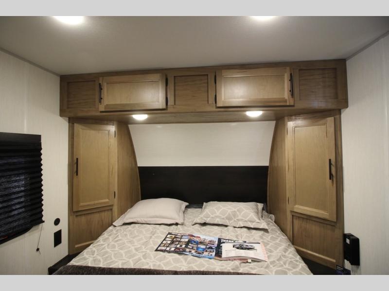 Convenient camping is found with this lightweight travel trailer! Once you arrive at your destination, put out the power awning, then make lunch on the exterior mini kitchen. Inside, you can dine at the bar top with stools, freshen up in the tub/shower, and sleep soundly on the queen bed in the master bedroom. There is also a sofa slide out to provide additional seating, sleeping, and interior space! And you're sure to find plenty of storage spaces both inside and outside, including a rear storage rack!