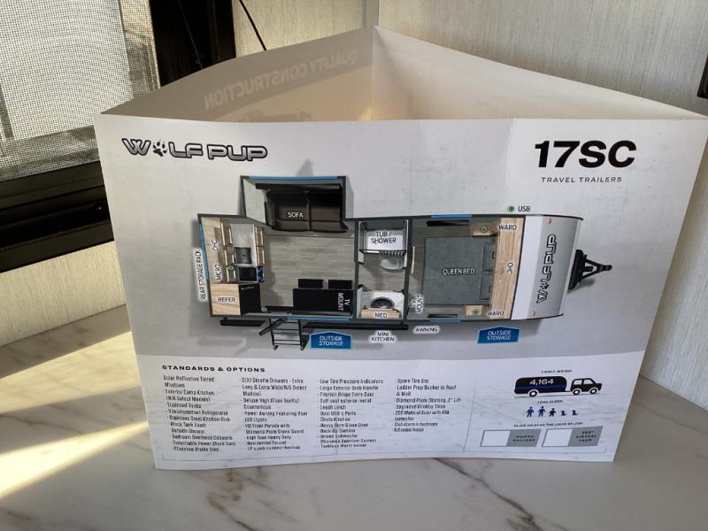 The 2025 Wolf Pup 17SC is a compact, smartly designed travel trailer that brings big features to your smallest campsites. Lightweight and easy to tow, it’s ideal for couples or small families seeking a nimble rig with comfort, style, and Forest River durability.