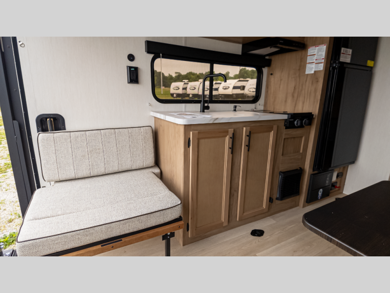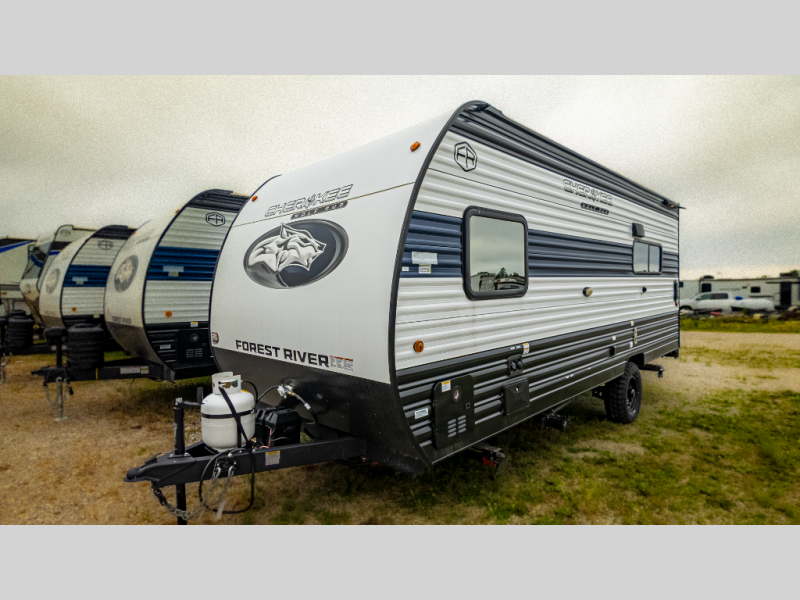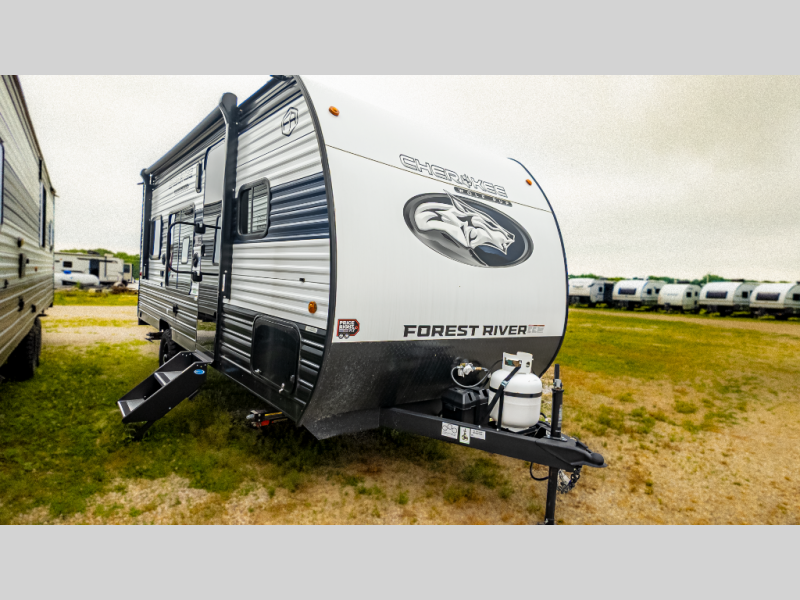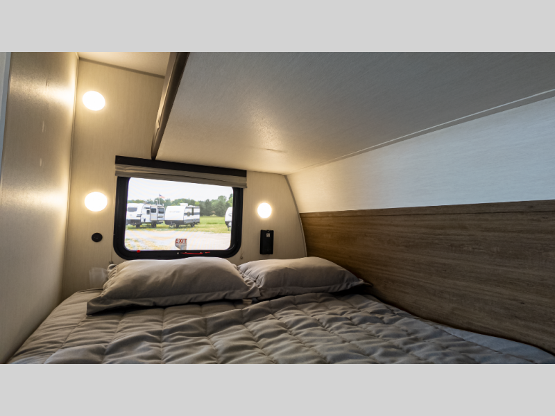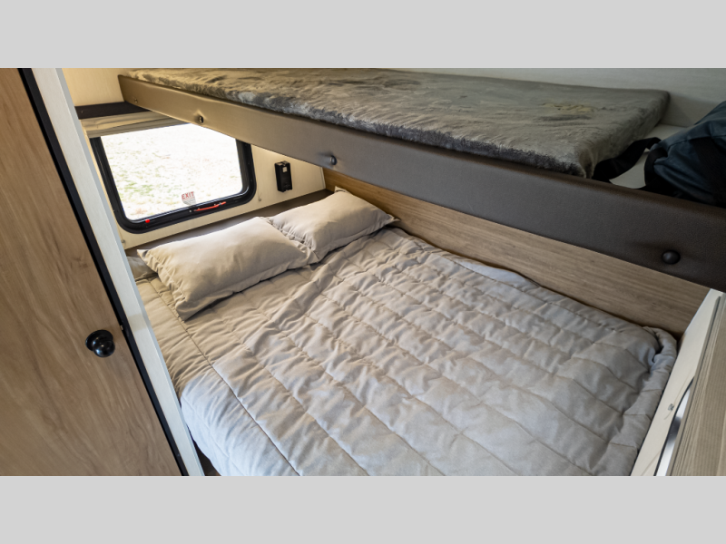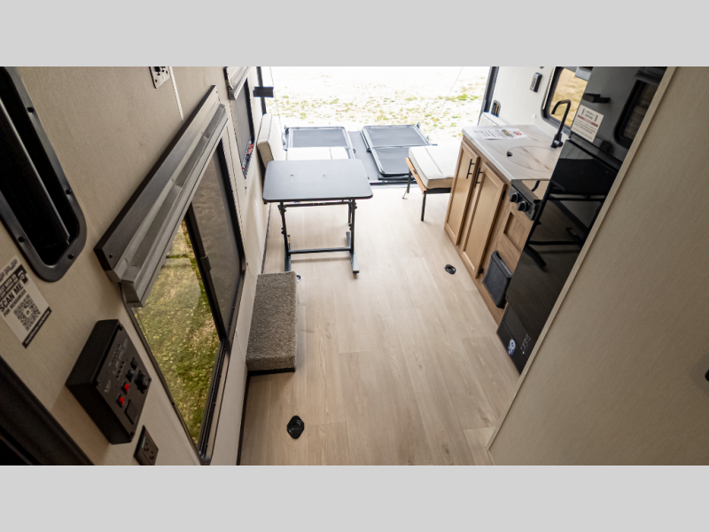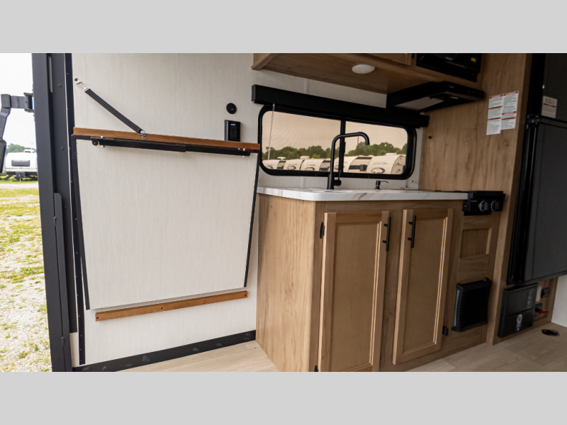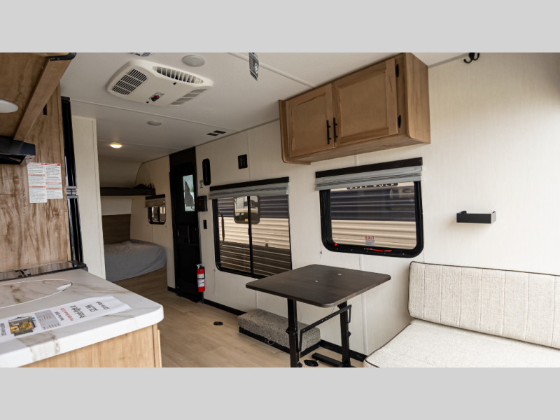 A: The 22'8 Wolf Pup 18RJBW delivers a chef-grade kitchen, queen bed with overhead bunk, functional bath—and dual patio/ramp doors that double your outdoor hangout space.