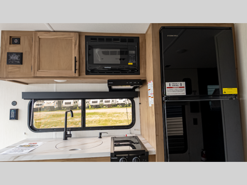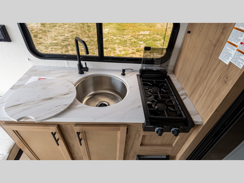 The Wolf Pup 18RJBW blends toy-hauler versatility with practical weekend-living features. Solid payload (1,876 lb) means you tow gear without sacrificing camping essentials, and dual patio doors extend your hangout footprint.