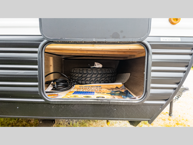 - 26 gal fresh, 23 gal gray, 28 gal black + tankless heater + 12 V tank pad heaters