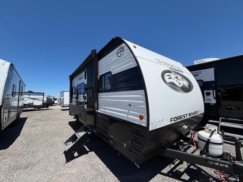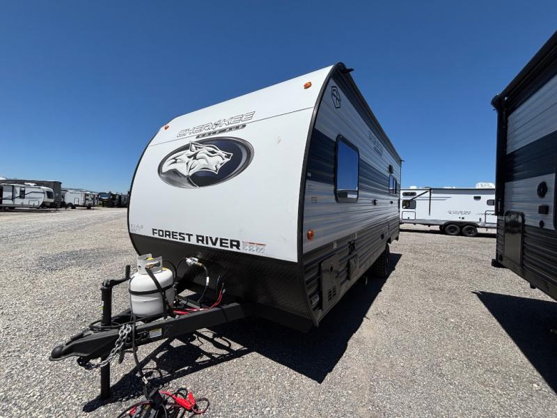 Each one of these Forest River Cherokee Wolf Pup travel trailers and toy hauler are lightweight and easy to tow! They are fully self contained with ample tank capacities, an abundance of storage space, and filled with at home amenities. The aerodynamic smooth radius front profile, the Power Gear frame technology, and the space saver rail design make them easier to maneuver. You will also appreciate the seamless roofing membrane with heat reflectivity to keep the sun from making your unit a hot box. The tongue and groove plywood flooring will hold up for years of fun and the USB charging stations help to keep your electronics at 100% while you're away. Come find the best model for you today!