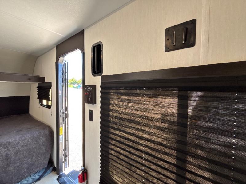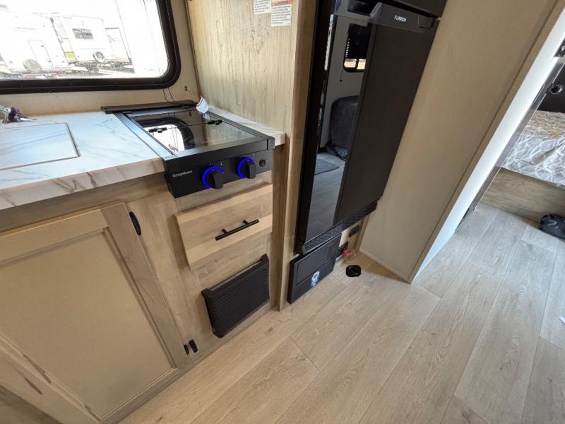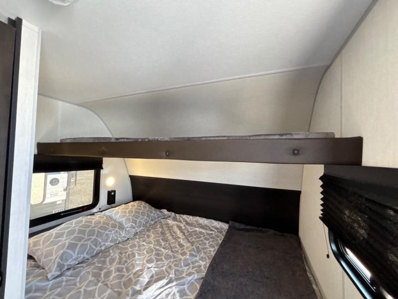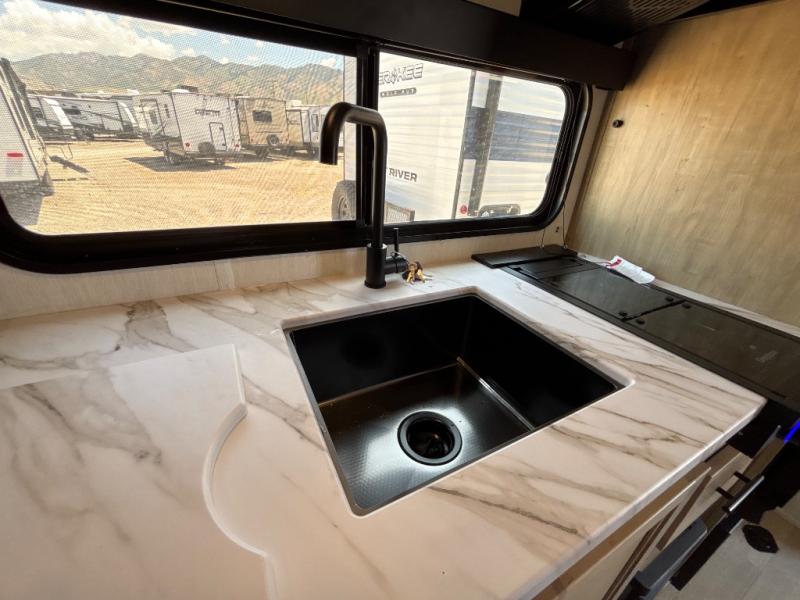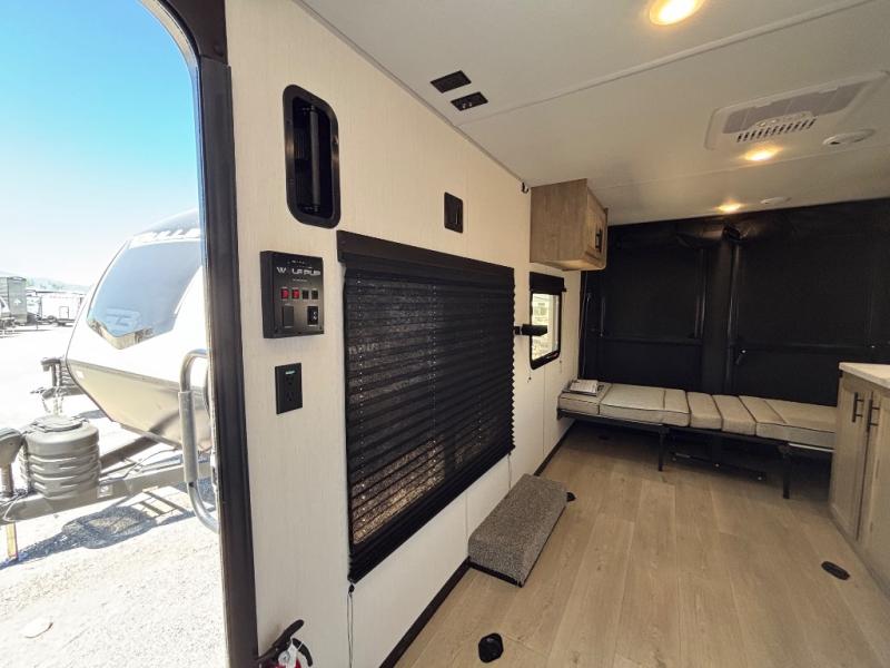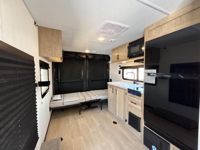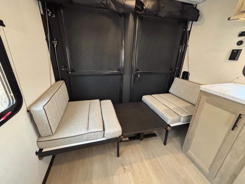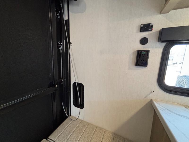 Sleeping for five and up to 13' 11" for your toys makes for an exciting adventure. The rear ramp door makes it easy to load and unload your toys, and once you are camped and the toys are removed, you can set up the dinette in back with removeable table. At night, this can double as sleeping space for two more tired campers. Up front, a queen bed with bunk above, plus storage. A tub/shower will keep everyone feeling their best, and the modern chef's kitchen will allow you to keep everyone fueled and ready for fun! There is a inside and outside TV mount so you can choose where to put a television if you add one. There is also outside storage up front and a 12' awning for added living space outside to enjoy.
