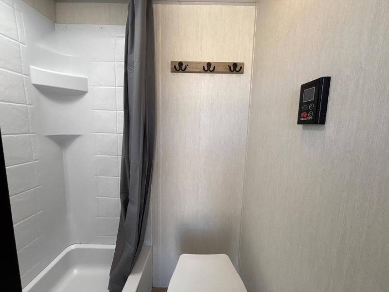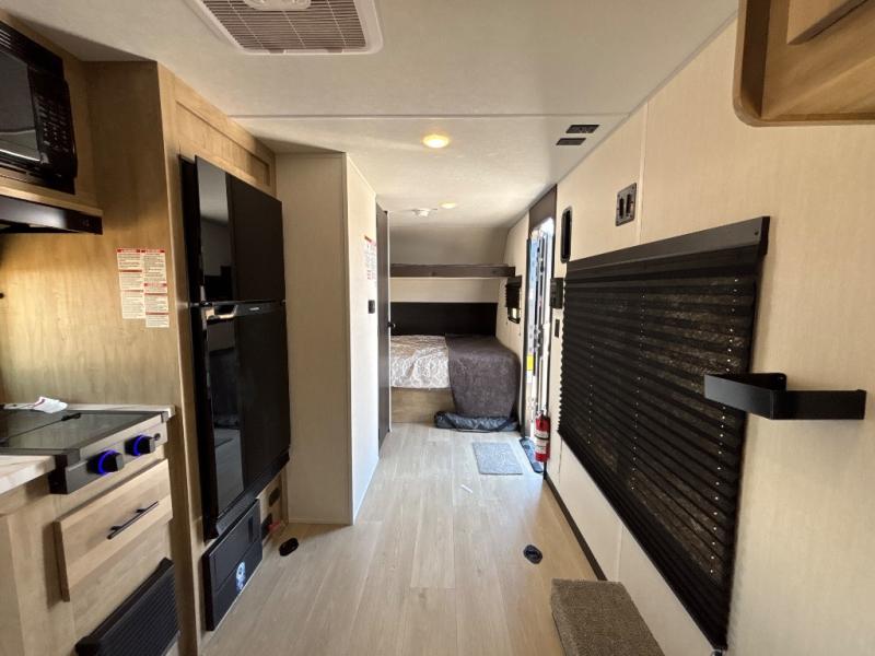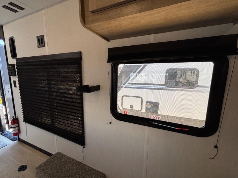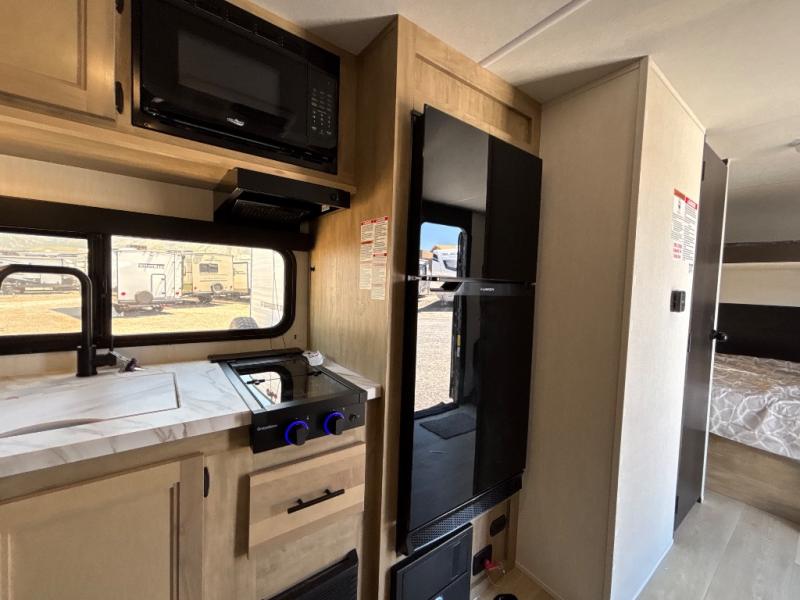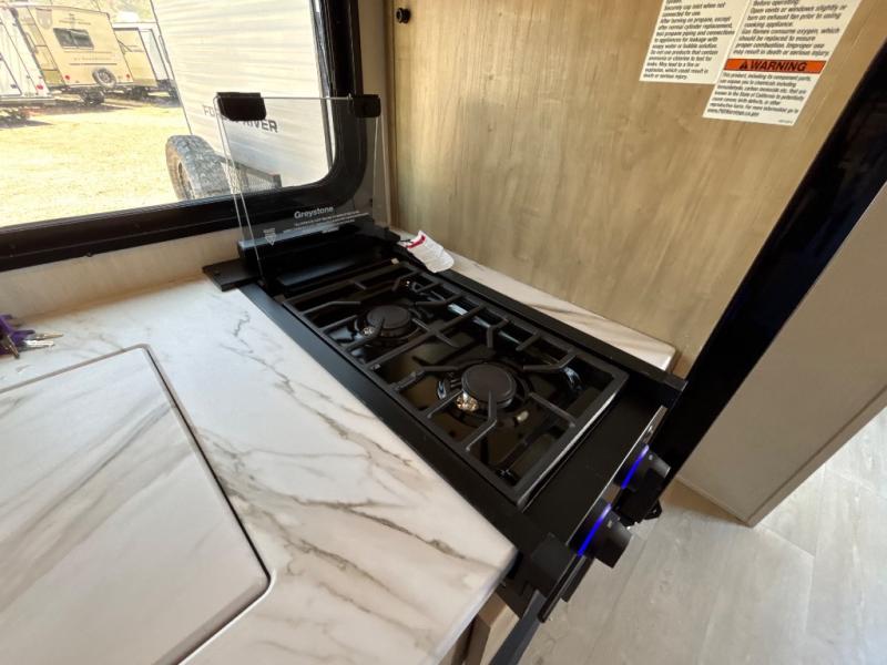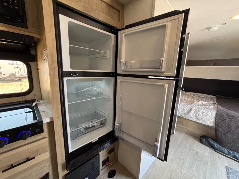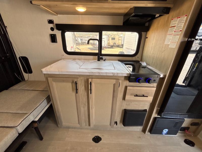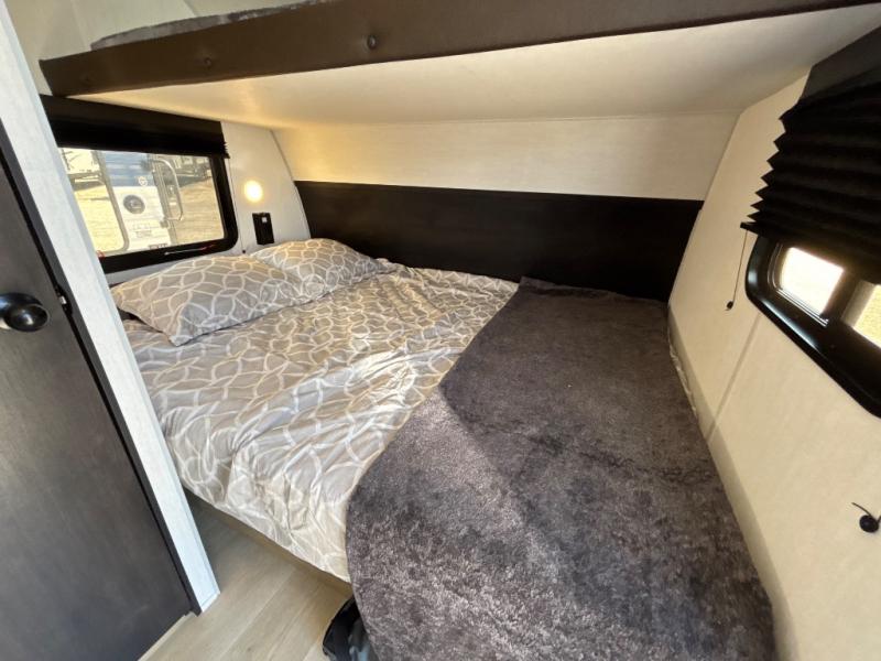 Sleeping for five and up to 13' 11" for your toys makes for an exciting adventure. The rear ramp door makes it easy to load and unload your toys, and once you are camped and the toys are removed, you can set up the dinette in back with removeable table. At night, this can double as sleeping space for two more tired campers. Up front, a queen bed with bunk above, plus storage. A tub/shower will keep everyone feeling their best, and the modern chef's kitchen will allow you to keep everyone fueled and ready for fun! There is a inside and outside TV mount so you can choose where to put a television if you add one. There is also outside storage up front and a 12' awning for added living space outside to enjoy.