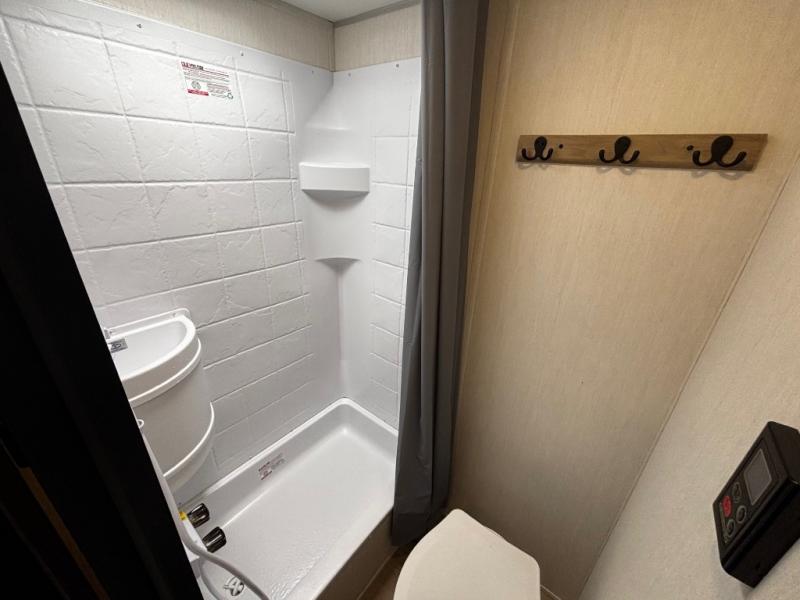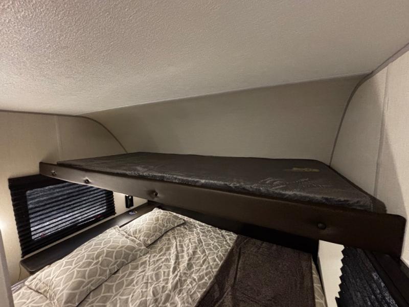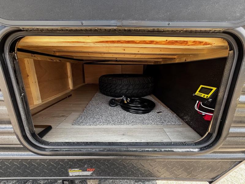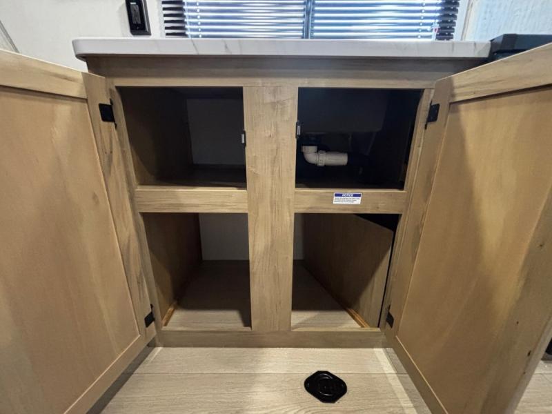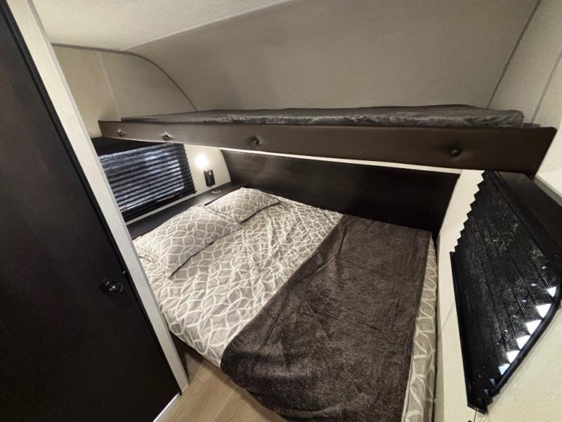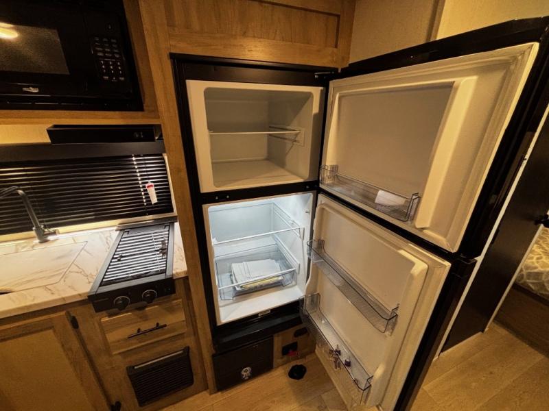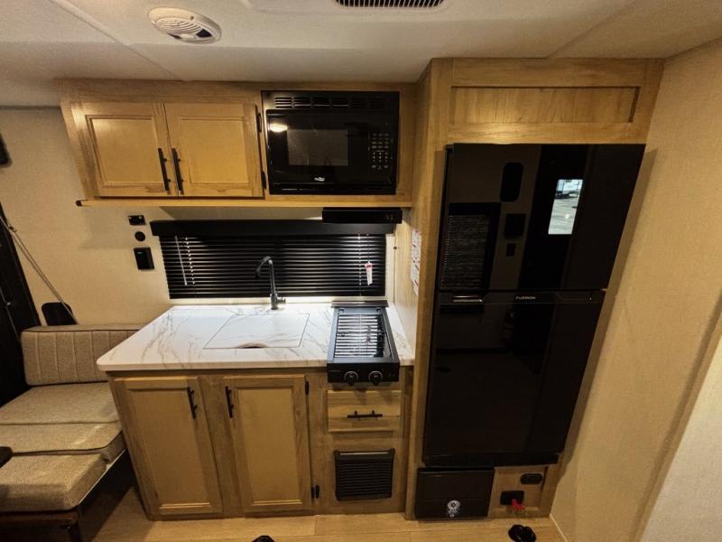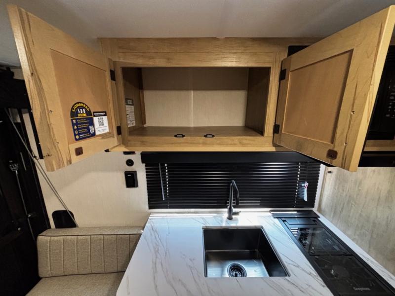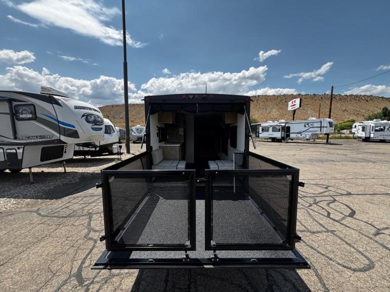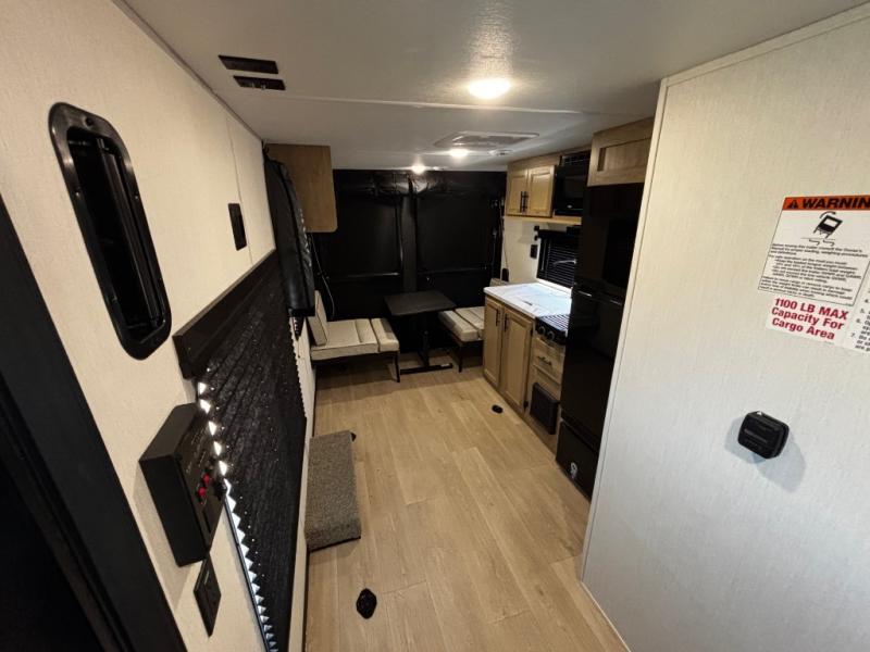Sleeping for five and up to 13' 11" for your toys makes for an exciting adventure. The rear ramp door makes it easy to load and unload your toys, and once you are camped and the toys are removed, you can set up the dinette in back with removeable table. At night, this can double as sleeping space for two more tired campers. Up front, a queen bed with bunk above, plus storage. A tub/shower will keep everyone feeling their best, and the modern chef's kitchen will allow you to keep everyone fueled and ready for fun! There is a inside and outside TV mount so you can choose where to put a television if you add one. There is also outside storage up front and a 12' awning for added living space outside to enjoy.