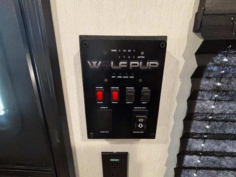 Each one of these Forest River Cherokee Wolf Pup travel trailers and toy hauler are lightweight and easy to tow! They are fully self contained with ample tank capacities, an abundance of storage space, and filled with at home amenities. The aerodynamic smooth radius front profile, the Power Gear frame technology, and the space saver rail design make them easier to maneuver. You will also appreciate the seamless roofing membrane with heat reflectivity to keep the sun from making your unit a hot box. The tongue and groove plywood flooring will hold up for years of fun and the USB charging stations help to keep your electronics at 100% while you're away. Come find the best model for you today!