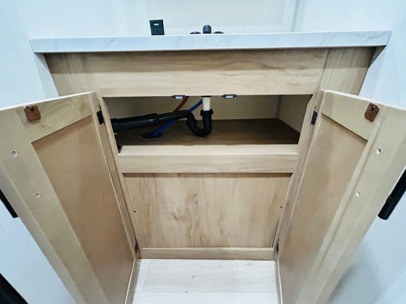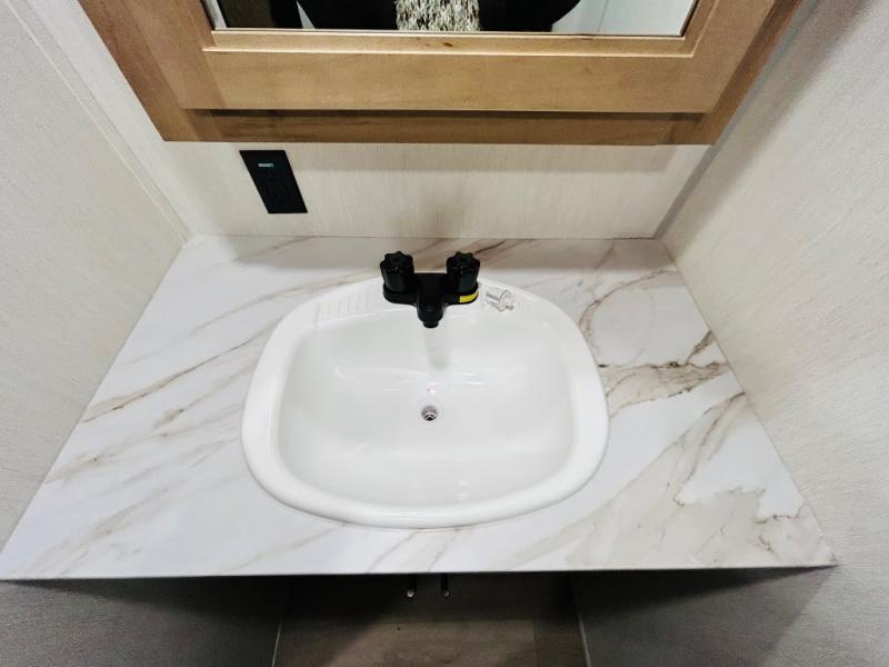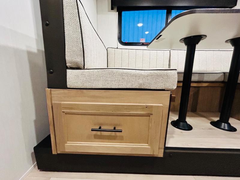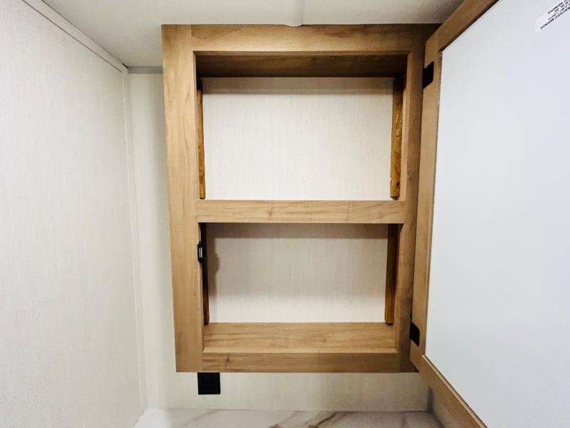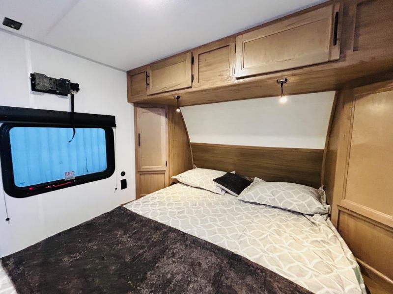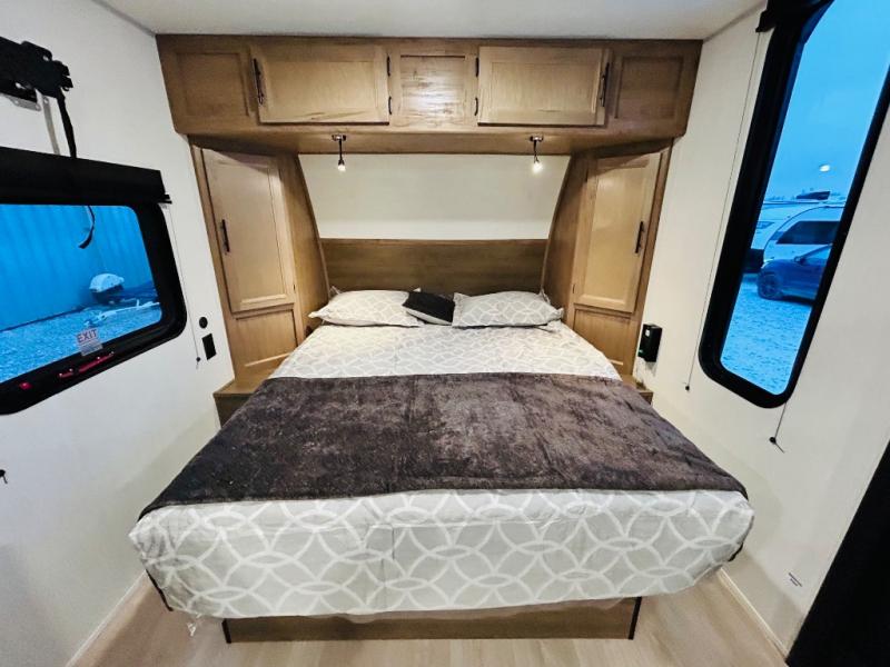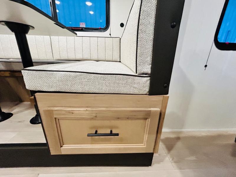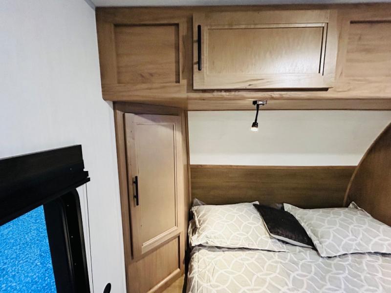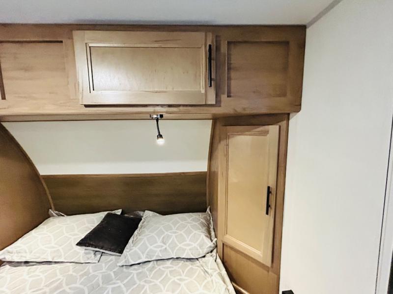 This travel trailer is perfect for a small family or group to enjoy since there is a front queen bed for you and a U-shaped dinette for guests. The kitchen provides a microwave oven, round single bowl sink, a range for cooking, and a 12V high efficiency refrigerator to keep all of your perishables fresh. The rear bath features a tub/shower, toilet, and vanity with a sink, plus a medicine cabinet to keep things tidy.