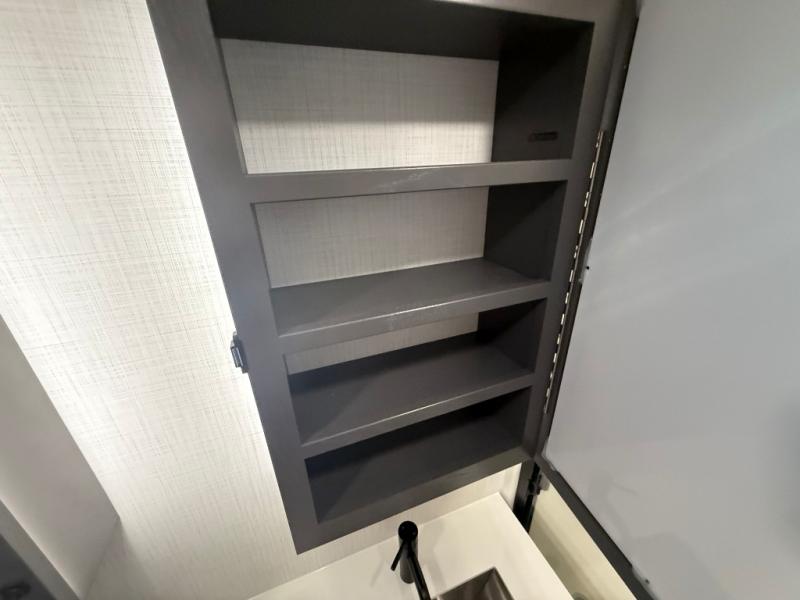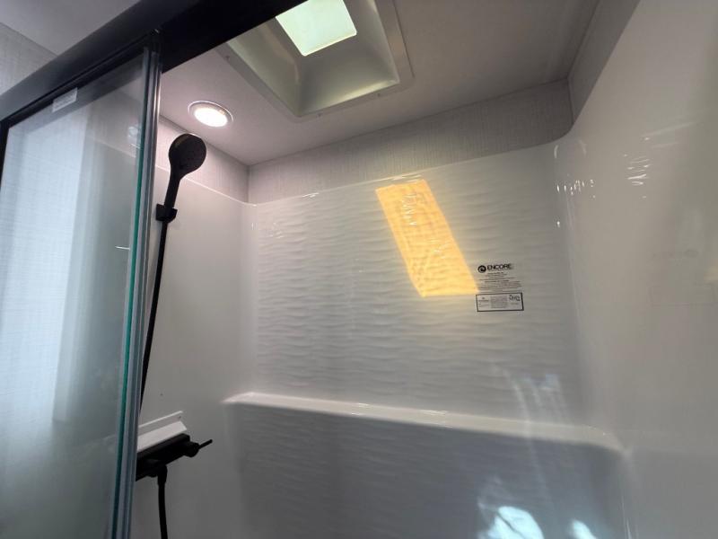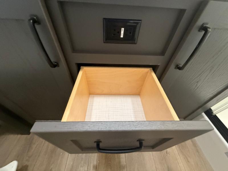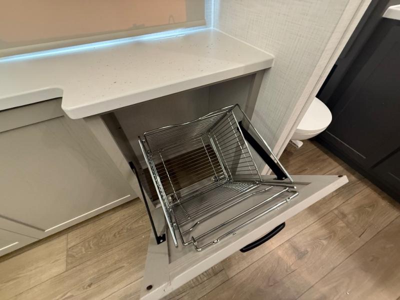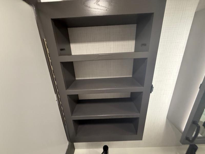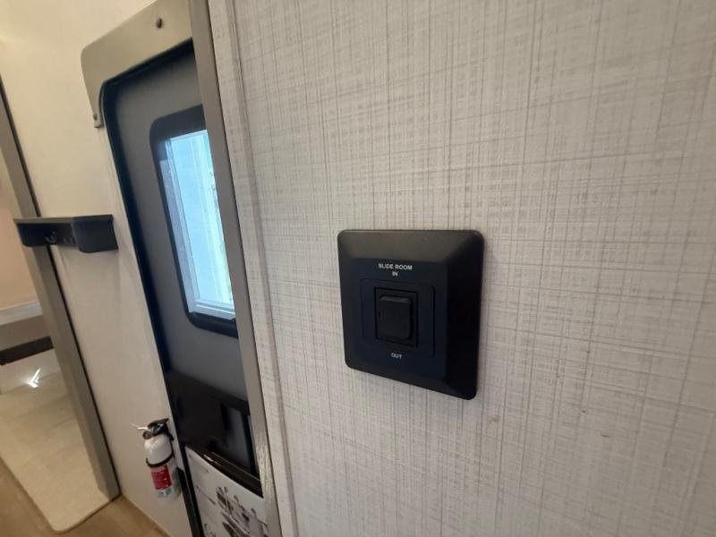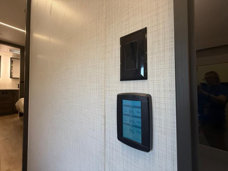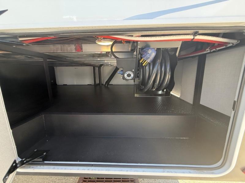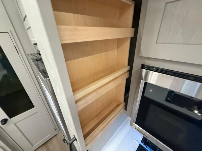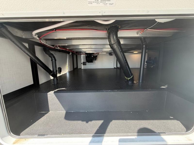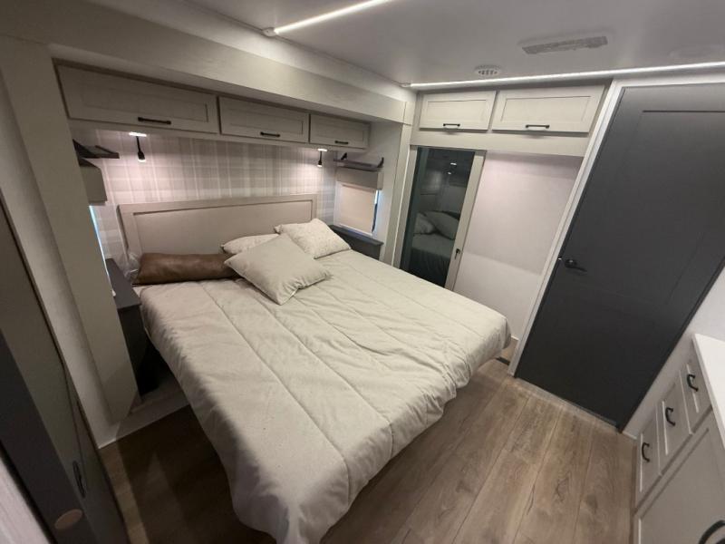 Comfort is found at every turn in this spacious fifth wheel! The front living area will be a favorite place to hang out with its dual 60" split tri-fold sofas, 78" sofa, and entertainment center with a fireplace. The chef of your group will find a middle kitchen, complete with a counter peninsula, a gas cooktop, a stainless-steel oven, plus a 12V stainless-steel residential style refrigerator with an ice maker. There is also a table and chairs where you can dine together each day. As you head to the rear of the unit, you'll find a half bath, which is convenient for all, and you're sure to enjoy your own space in the master bedroom. There is a king bed slide out here, a hamper, TV with storage, and a full rear bath with dual bath sinks; how convenient!