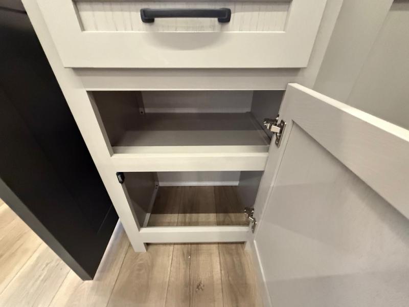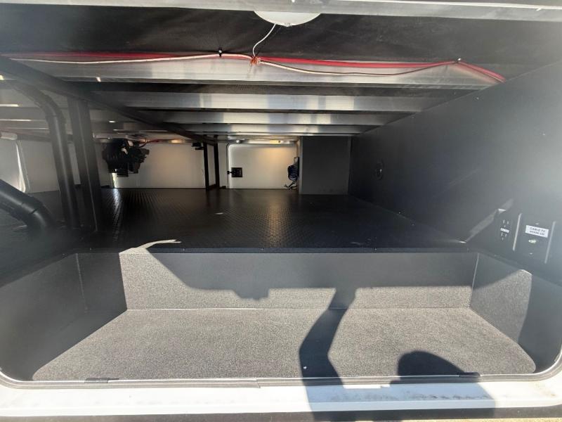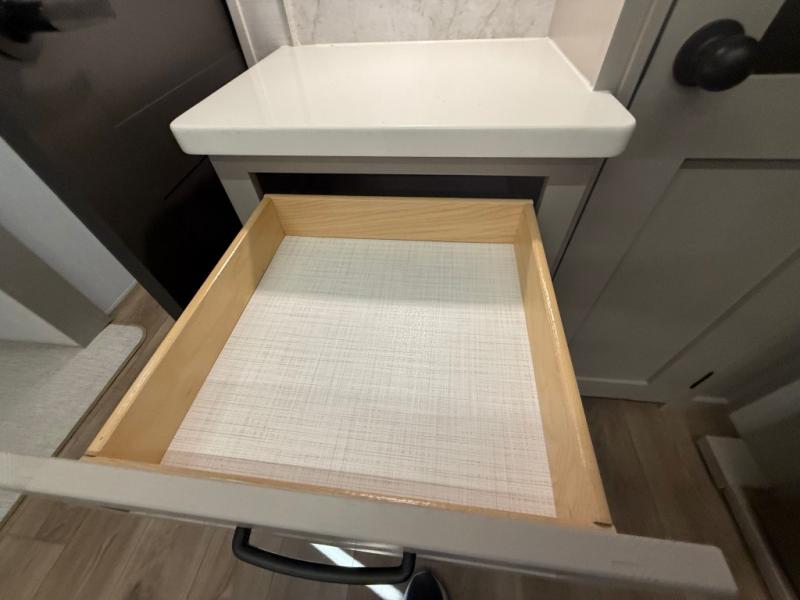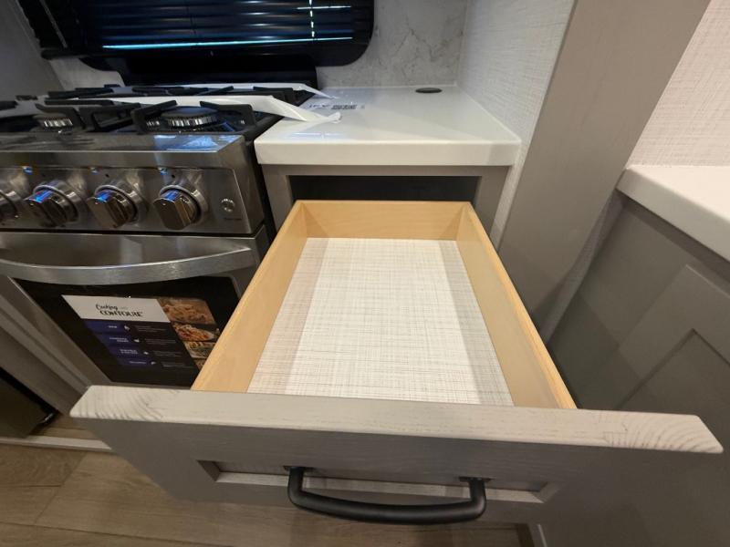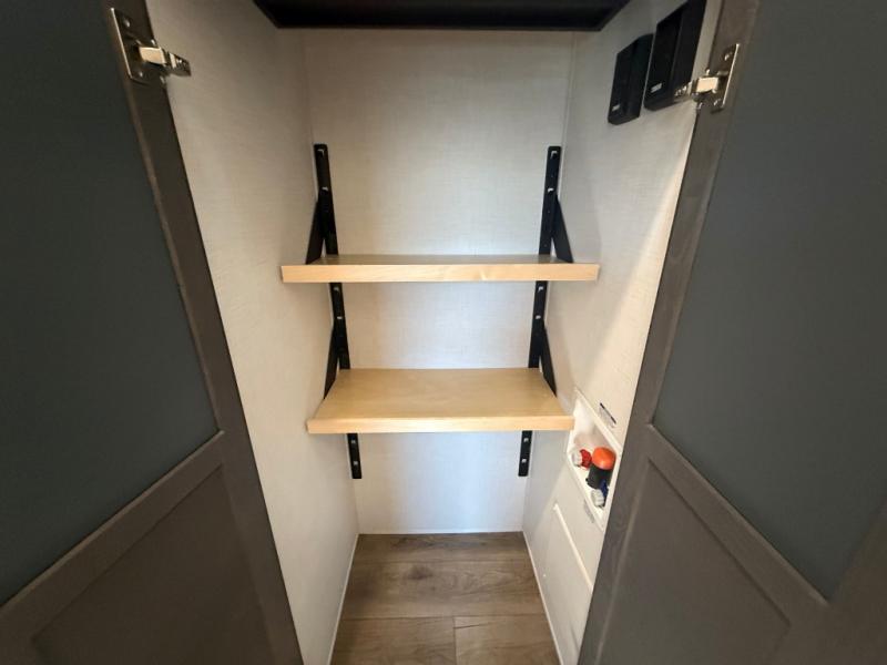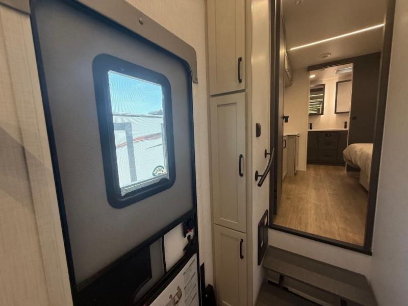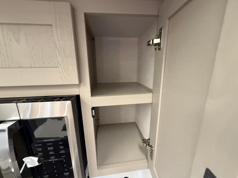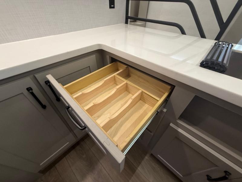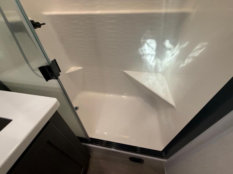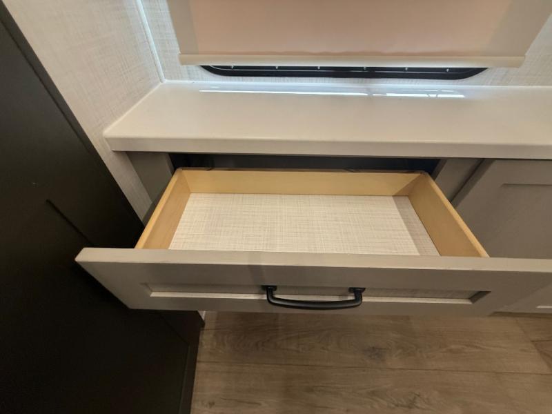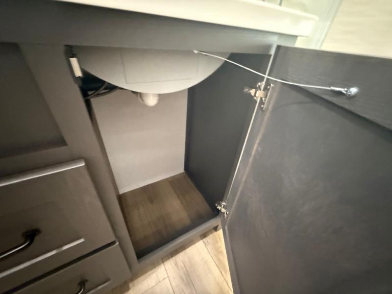 Comfort is found at every turn in this spacious fifth wheel! The front living area will be a favorite place to hang out with its dual 60" split tri-fold sofas, 78" sofa, and entertainment center with a fireplace. The chef of your group will find a middle kitchen, complete with a counter peninsula, a gas cooktop, a stainless-steel oven, plus a 12V stainless-steel residential style refrigerator with an ice maker. There is also a table and chairs where you can dine together each day. As you head to the rear of the unit, you'll find a half bath, which is convenient for all, and you're sure to enjoy your own space in the master bedroom. There is a king bed slide out here, a hamper, TV with storage, and a full rear bath with dual bath sinks; how convenient!