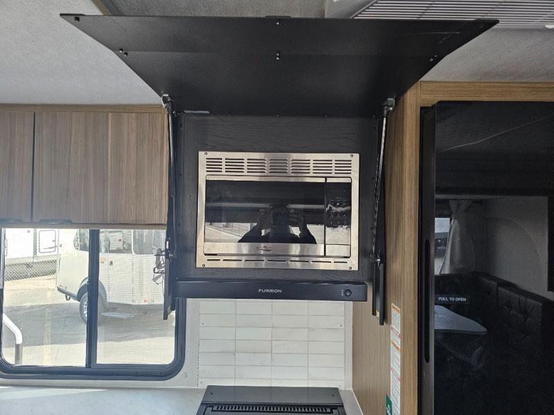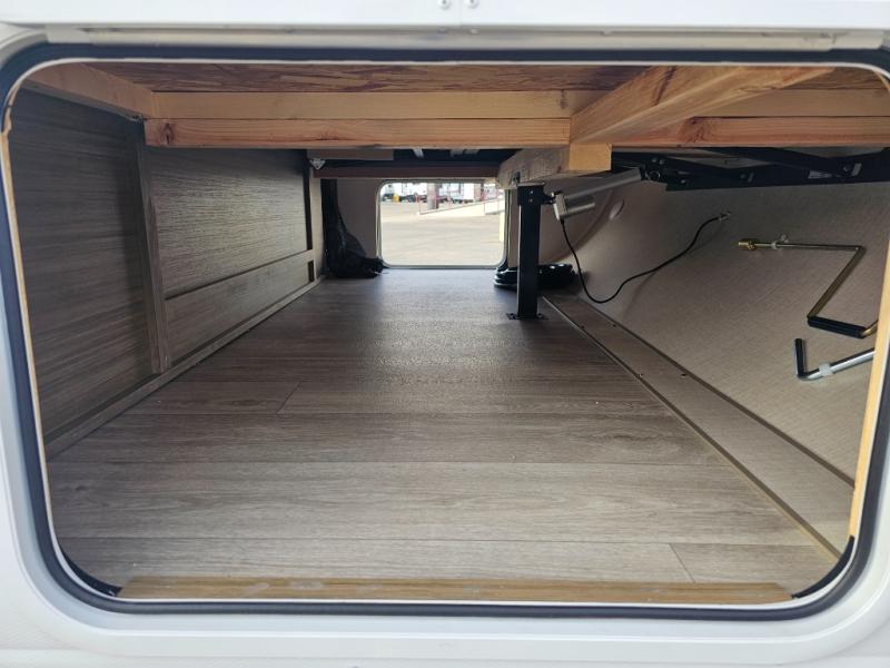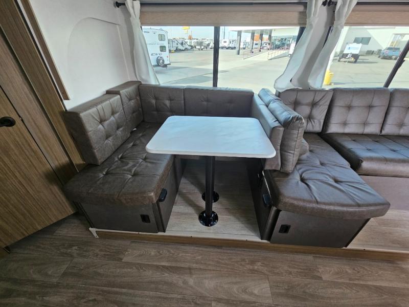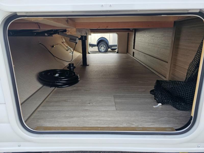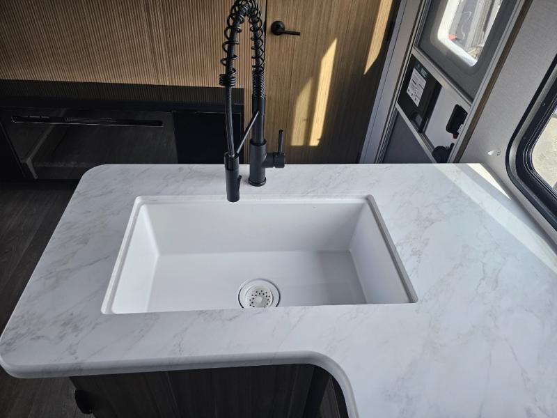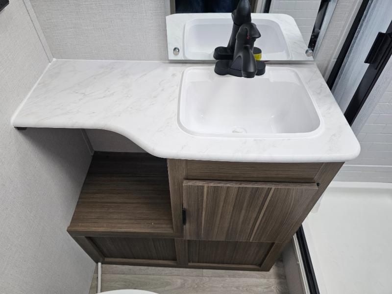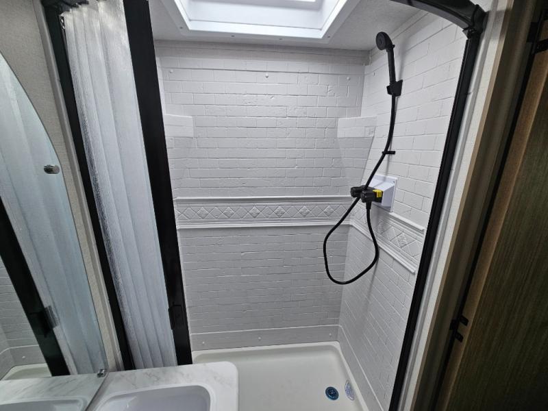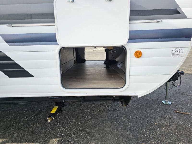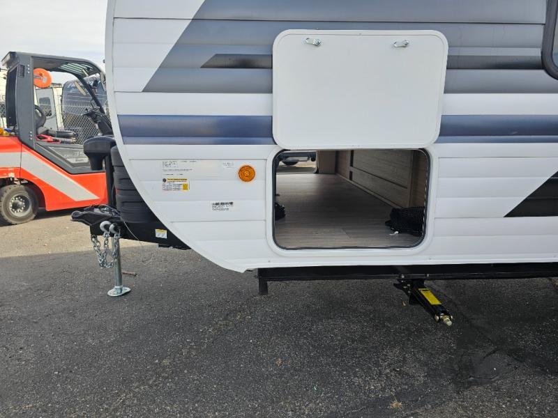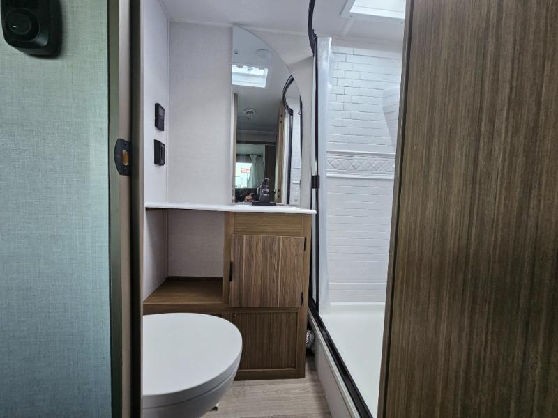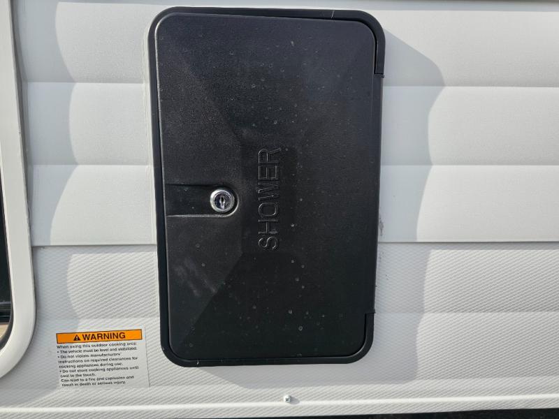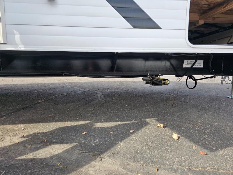 With any EVO Lite travel trailer Forest River, there are features that provide function and convenience such as the power tongue jack and the exterior convenience package with a friction hinge entry door and magnetic latches on baggage doors, plus the on-demand water heater. There is also an XL grab handle, two outside speakers, plus E-Z lube axles and self-adjusting brakes for a better towing experience. Inside, you'll love the modern cloth roller shades with autostop, along with an upgraded appliance package and a USB port package to help keep your electronics charged up and ready to go.
