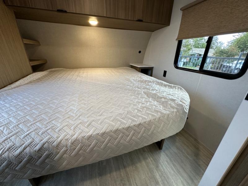 RV Queen Bed in a front private bedroom
