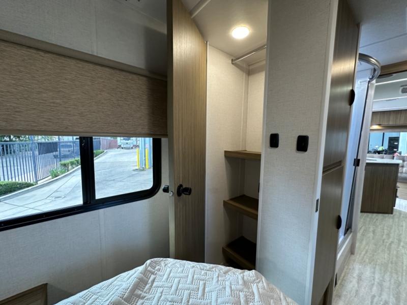 Enter through the front private bedroom or the rear living area—perfect for direct access to your sleeping space or main living room without disturbing the rest of the RV.