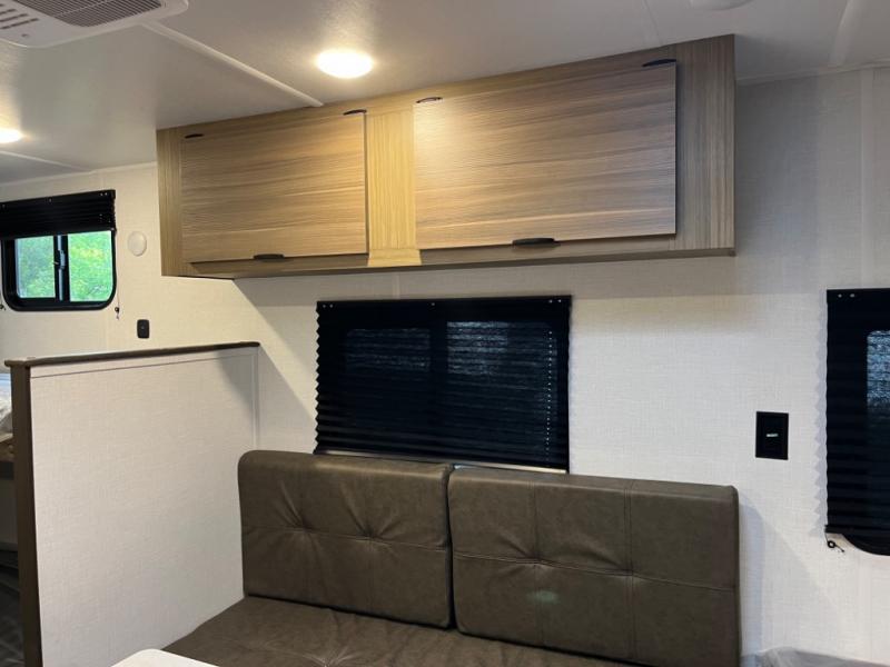 This travel trailer will be perfect for all your camping needs. The front queen bed provides a comfy place to rest your head each night, and the private bath with a shower and toilet will let you freshen up daily. Once you've made dinner on the two burner cooktop or in the microwave oven, you can relax on the sofa or visit outdoors under the 12' awning.